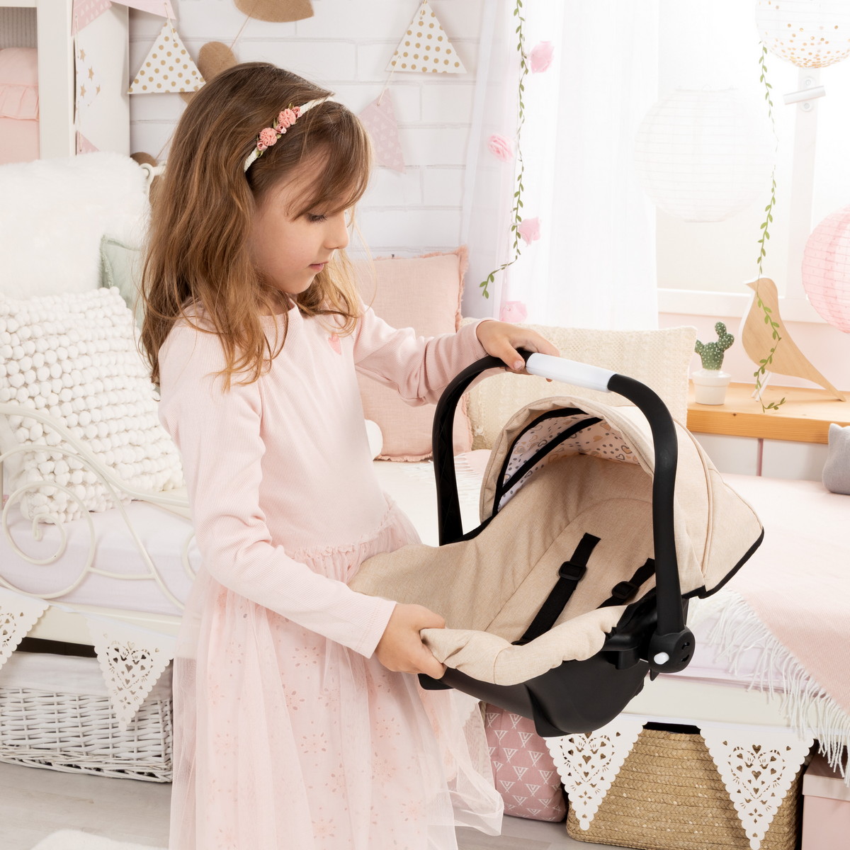 Bayer Design Puppen-Autositz mit Dach Herzchen Schleife beige