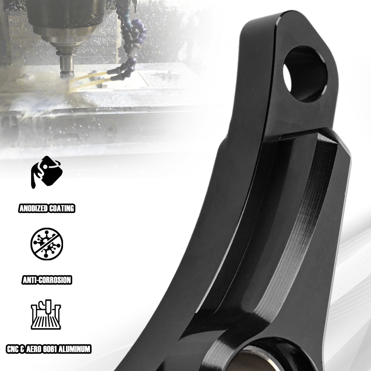 【Material】 CAD designed, CNC machined 6061 Billet Aluminum with a 16mm wide oil embedded bronze bushing for extra support.