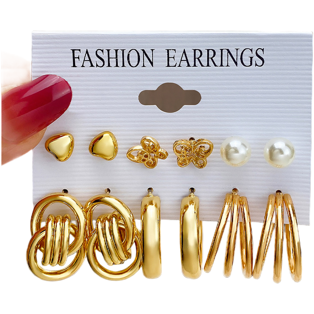 Lot de 6 paires de boucles d'oreilles vintage cercle géométrique perles style