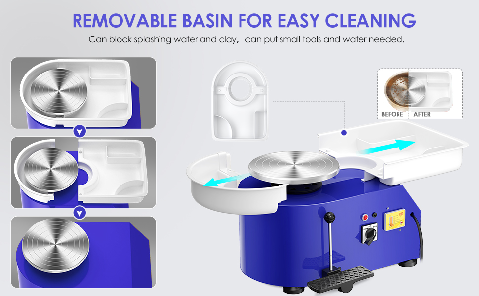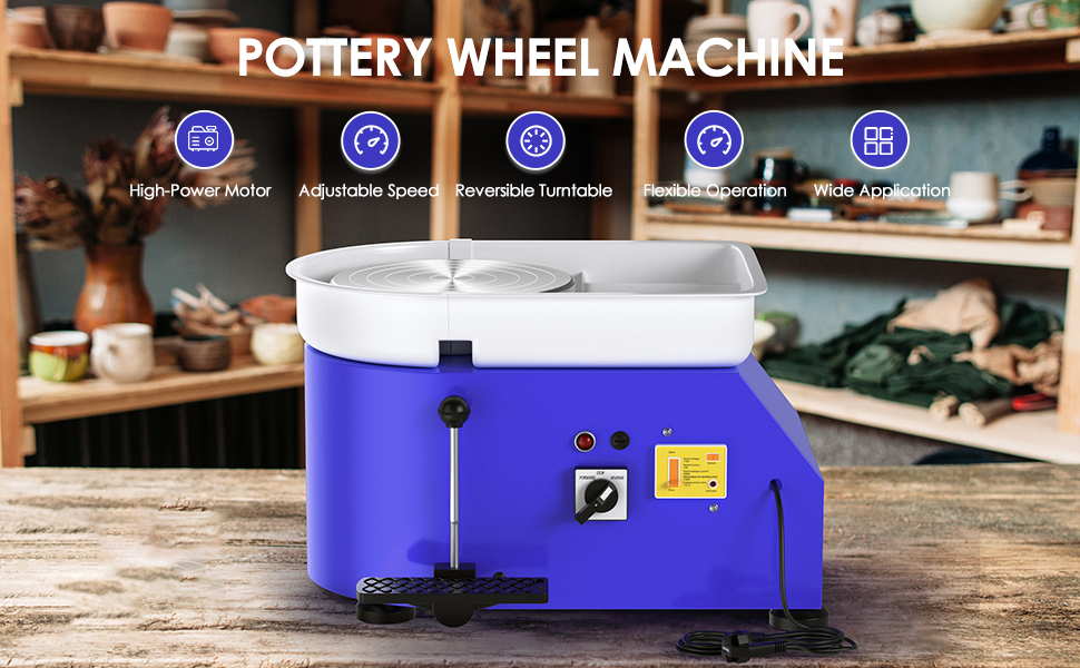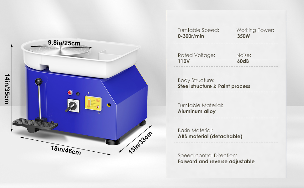 Pottery Wheel Pottery Forming Machine 25CM 350W Electric Pottery Wheel with Detachable Basin Foot Pedal DIY Clay Tool Ceramic Machine Work Clay Art Craft (Green)