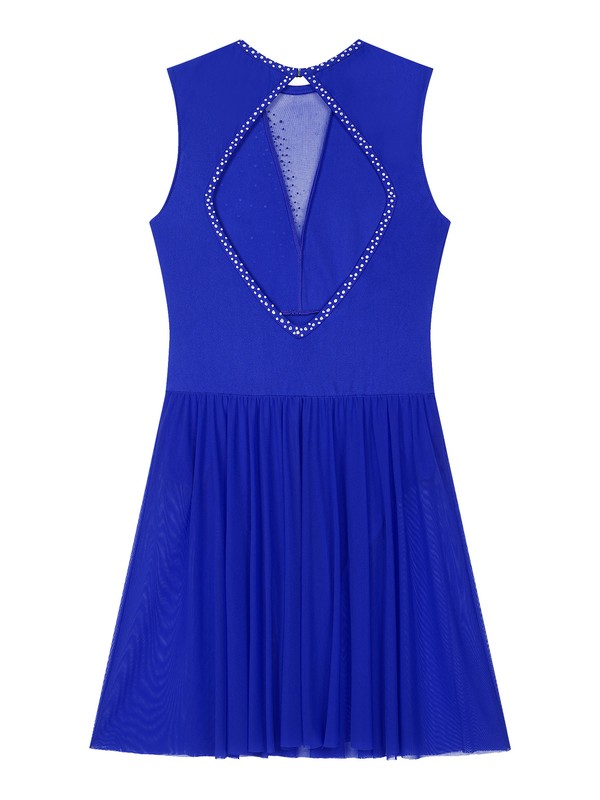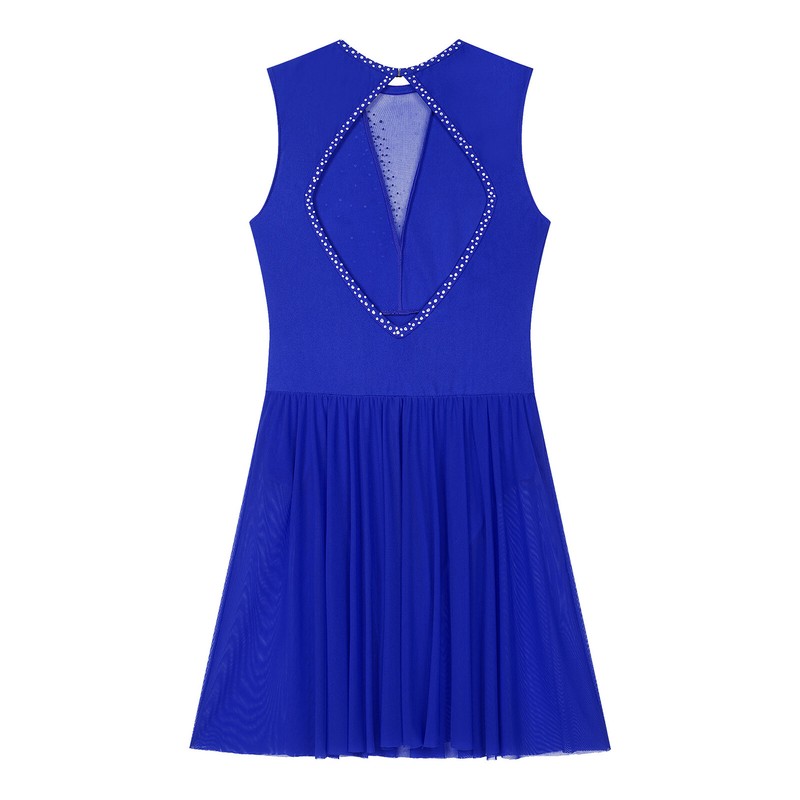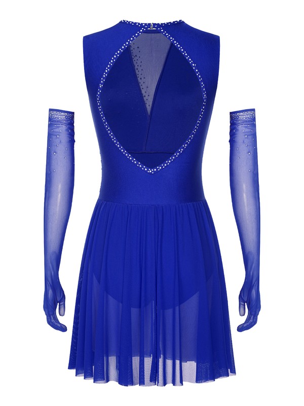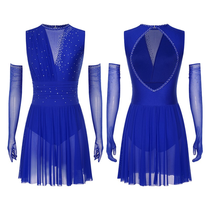 Sparkly rhinestones adorn the dress, making it eye-catching and on-trend, perfect for standing out on the ice or stage.