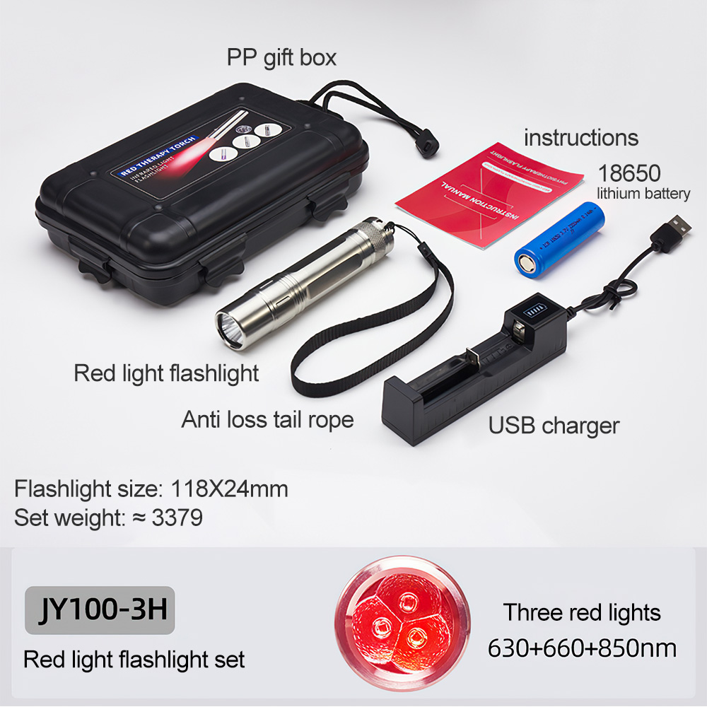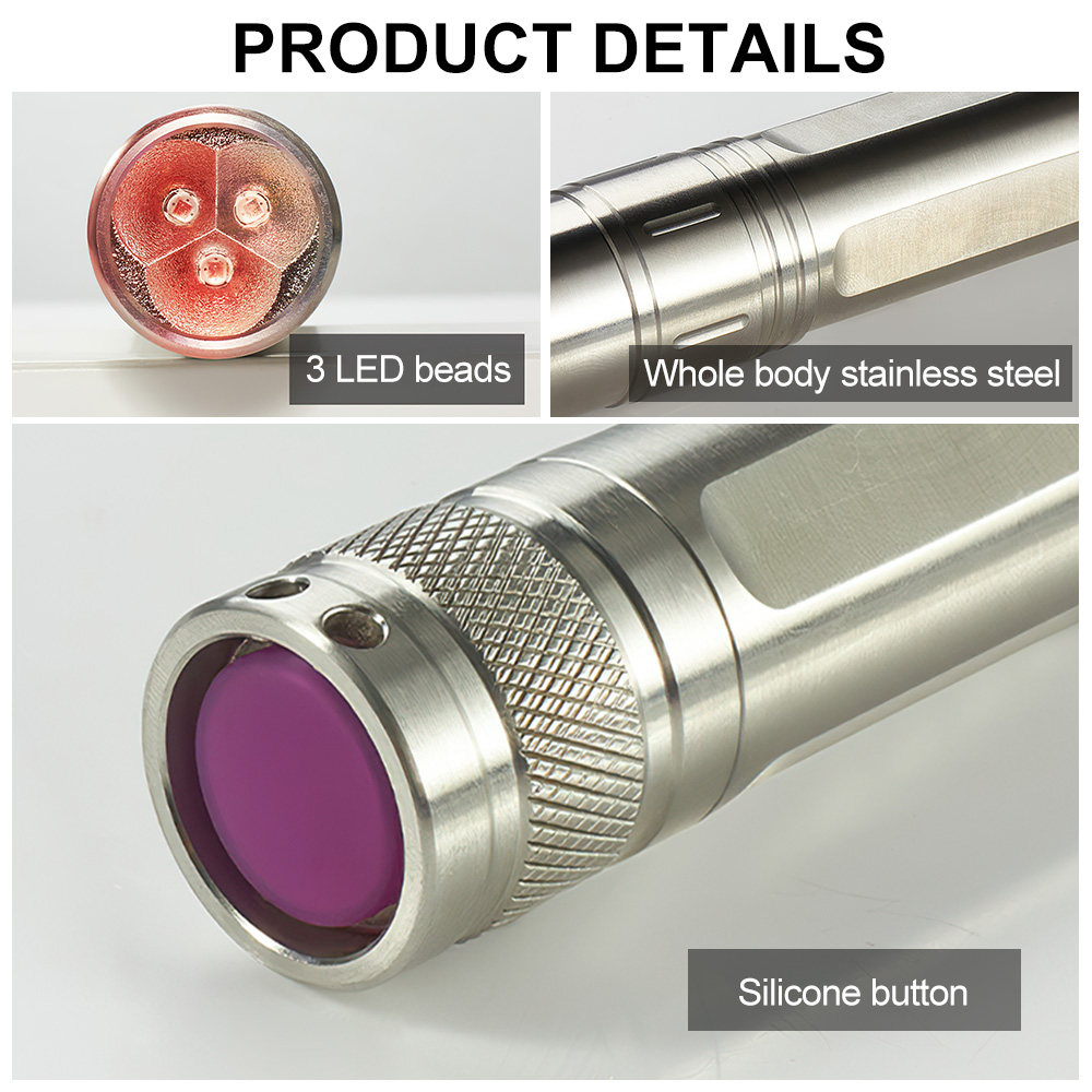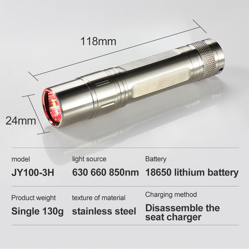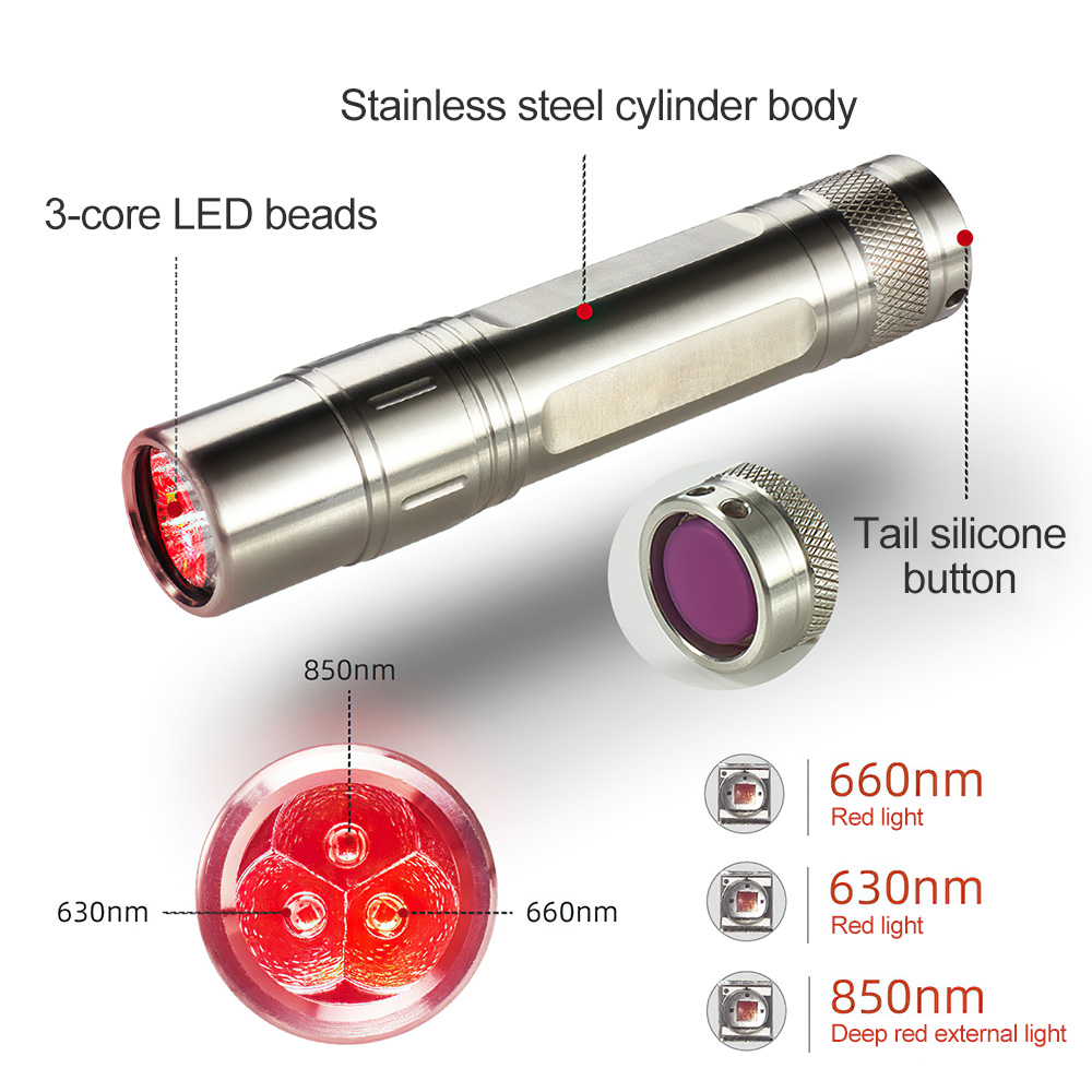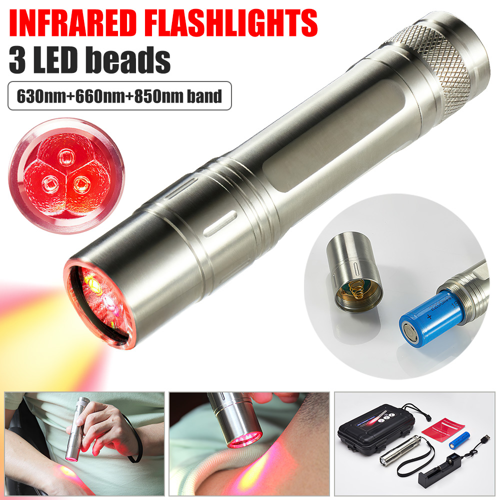 Features: - Made of high-quality stainless steel material, durable and sturdy, wear-resistant and corrosion-resistant. - With 3 different wavelengths, it can effectively relieve pain, fatigue and reduce wrinkles, widely used for fingers, legs, muscles, knees and cervical soreness. - Without a cooling fan, no noise, no worry about disturbing your treatment. - Safe and painless, thanks to the infrared technology, no harm to your body. - Easy to carry and store, suitable for home or travel use, to let yourself at ease anytime and anywhere. Specification: Color: As shown Shell Material: Stainless steel Automatical Timing: 5 minutes Input Voltage/ Current: 5V 1A Size: 140 x 21.2mm Power: 9W (3 x 3W) Spectrum: 630nm/ 660nm/ 850nm Package Includes: 1 x Red Infrared Light Therapy Lamp 1 x Lanyard 1 x 2200mAh Rechargeable Battery 1 x USB Battery Charger 1 x Plastic Container