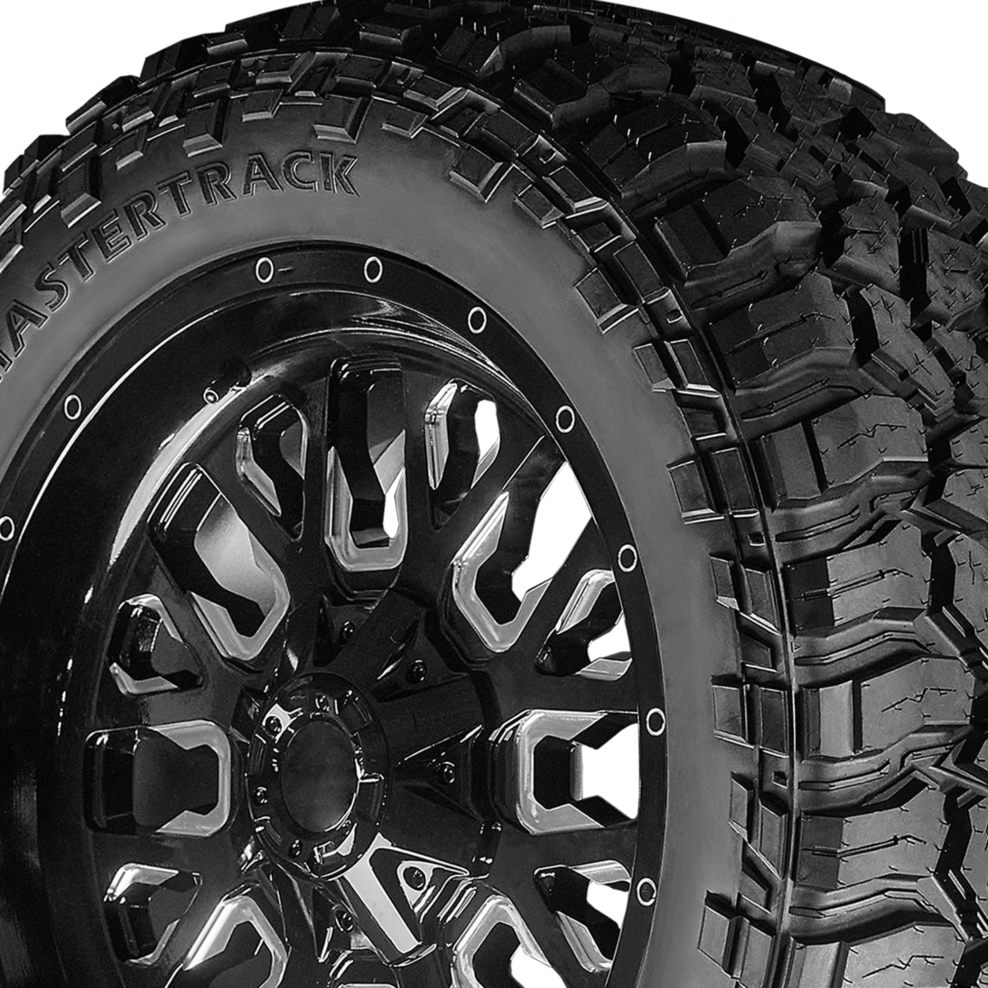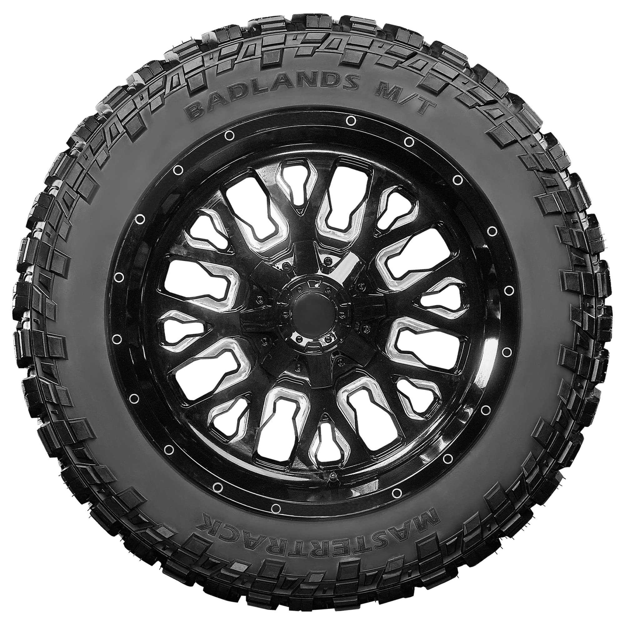 Conquer the nastiest, muddiest terrain with the Badlands MT mud-terrain tire from Mastertrack. The Badlands MT features an aggressive lug tread pattern, high ply rating, high void ratio for good self-cleaning of mud and debris, and a heavy-duty construction with a damage-resistant rubber compound.