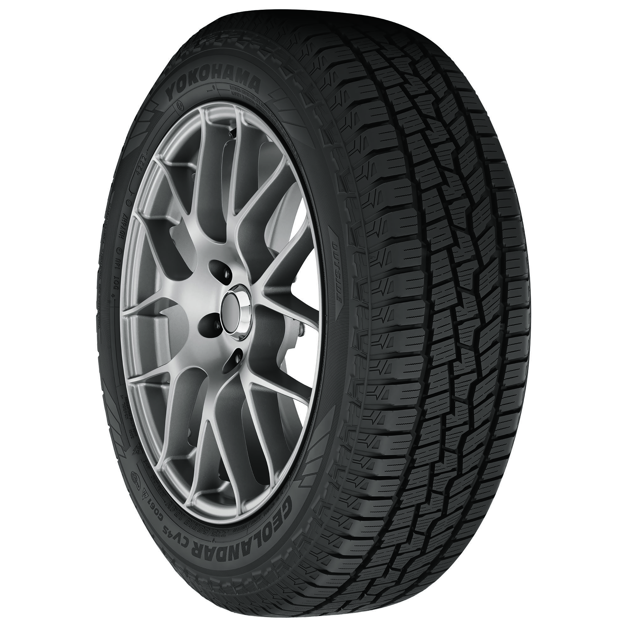 The Yokohama Geolandar CV 4S is a premium all-weather tire that's designed for CUVs and SUVs. With the Three Peak Mountain Snowflake (3PMSF) certification, the Geolandar CV 4S returns enhanced braking grip and traction in moderate to severe snow conditions. Thanks to the asymmetric tread pattern and triple 3D sipes, the all-weather tire provides enhanced snow and ice traction while maintaining consistent dry performance. Covered by a 60,000-mile limited treadwear warranty and 30-day satisfaction guarantee, the Yokohama Geolandar CV 4S is available in many tire sizes including 17, 18, 19, and 20 inches.