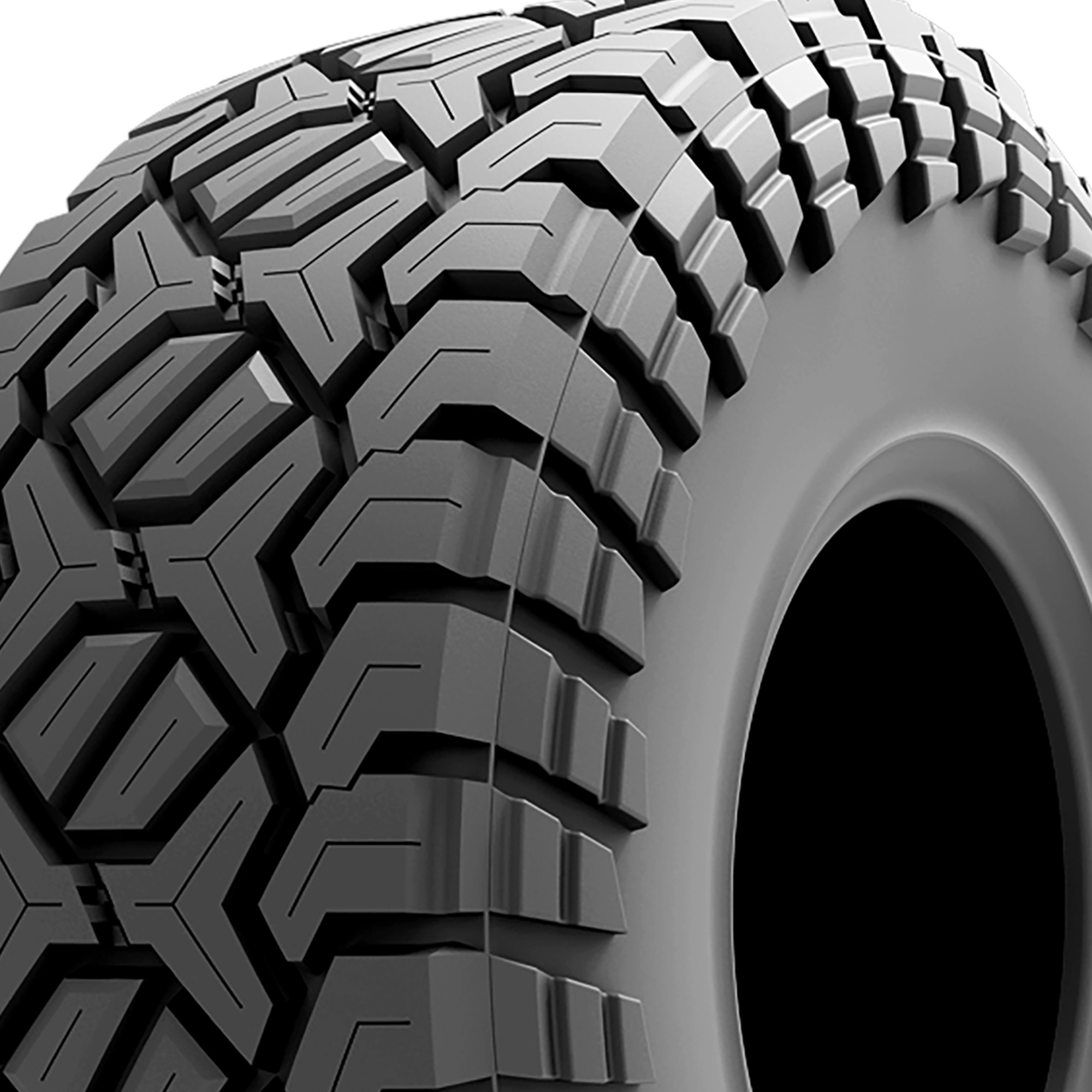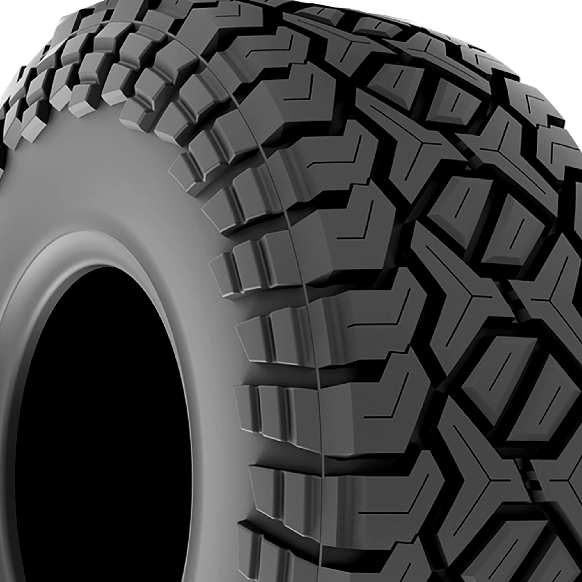 The Gripmax MaxGrip R/T is a rugged-terrain tire for SUVs and light trucks. It offers commanding off-road traction, on-road stability, solid durability, and long-lasting tread life. Unique grooves force water, dirt, and debris out of the contact patch for increased off-road traction and damage resistance. A wider footprint and sipes ensure improved stability, braking, and steering response. Extended shoulders on the sidewalls provide increased damage resistance.