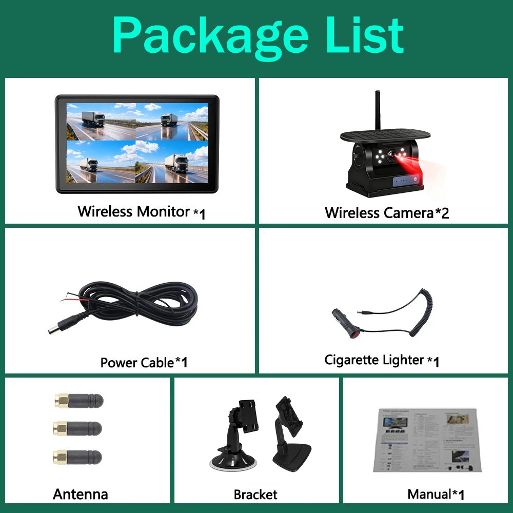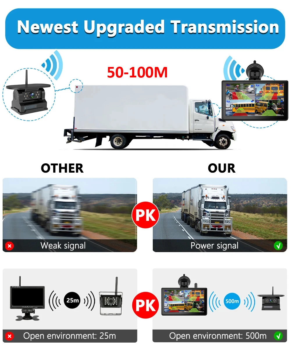 Say goodbye to complicated wiring! This solar-powered backup camera features a super-strong magnetic base and a built-in rechargeable battery for effortless installation. Just mount the camera and power the monitor—no drilling or cables needed. The 2.4GHz digital wireless technology ensures a strong, interference-free signal up to 328 feet.