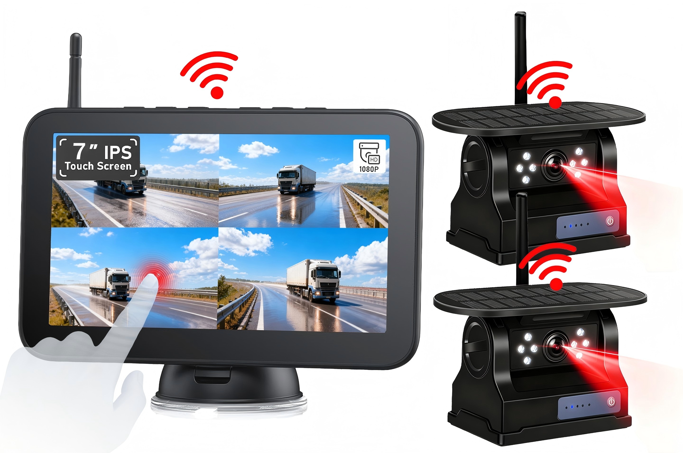 Upgrade to a brilliant 7-inch IPS touch screen with 1280x720 resolution and 600cd/㎡ high brightness. Supports up to 4 cameras (sold separately) with customizable split-screen views: single, dual, triple, or quad display. Perfect for large vehicles and multi-angle monitoring.