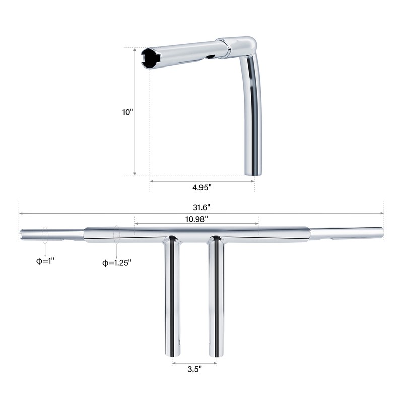Chrome glossy powder coated T-Bar handlebar