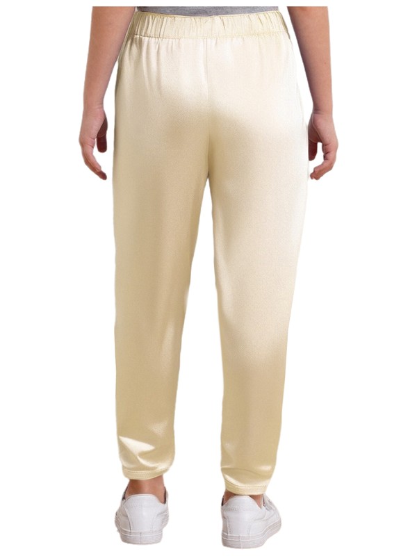 The silky texture of the pants gives a luxurious and elegant touch, fitting the trendy aesthetic of modern fashion.