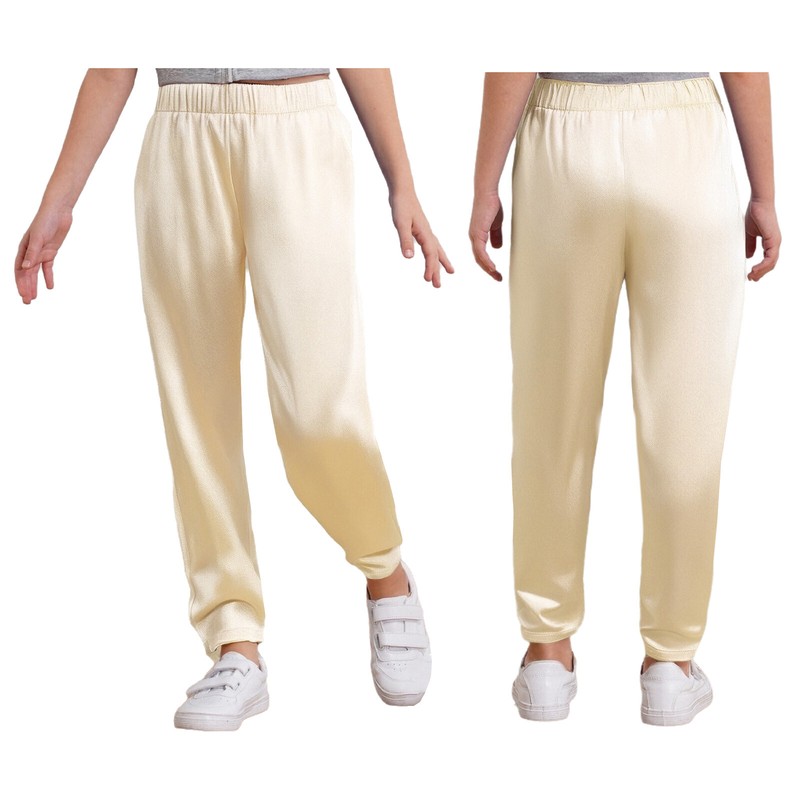 Made from high-quality polyester and spandex blend, the pants are silky and comfortable, allowing kids to move freely.