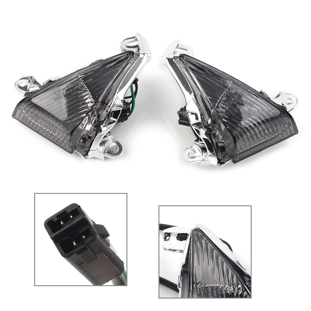 Condition: 100% Brand New Material: Plastic Lense Color: Smoke Quantity: One pair Easy to install, No install instruction. This is a new pair of replacement the front turn signal lenses for your motorcycle. Please ensure this item fits for your motorbike before you buy. Fitment: For Kawasaki ZX14R 2006-2011 For Kawasaki ZX10R 2006-2007 For Kawasaki ZX636/ZX6R 2005-2010 For Kawasaki Ninja 650F 2006-2008 For Kawasaki Concours 2008-2010 Package Included: 2 x Front Turn Signals Lenses