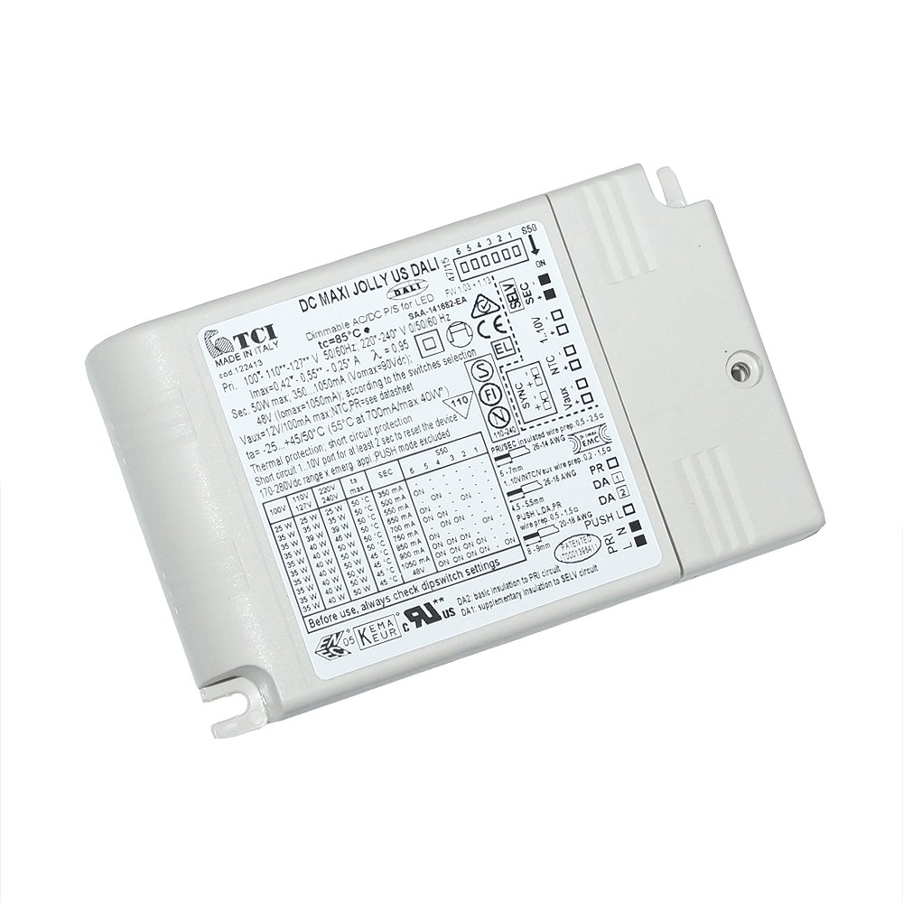 Fuente de alimentación para driver LED TCI DC Mini Jolly hasta 20W 250-900mA y 12/24V regulable 1-10V y botón