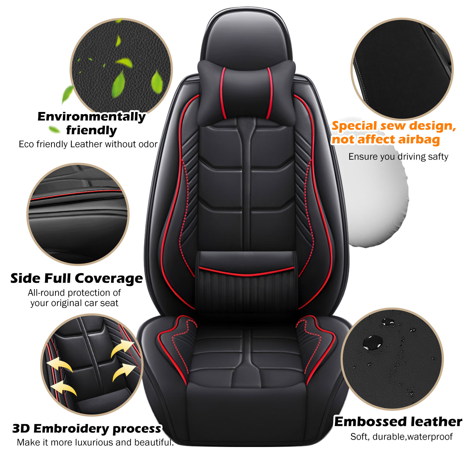 - Premium Quality Material: Crafted from 0.6mm thick high-quality leather that offers superior durability, water resistance, and easy cleaning, providing long-lasting protection for your car seats.