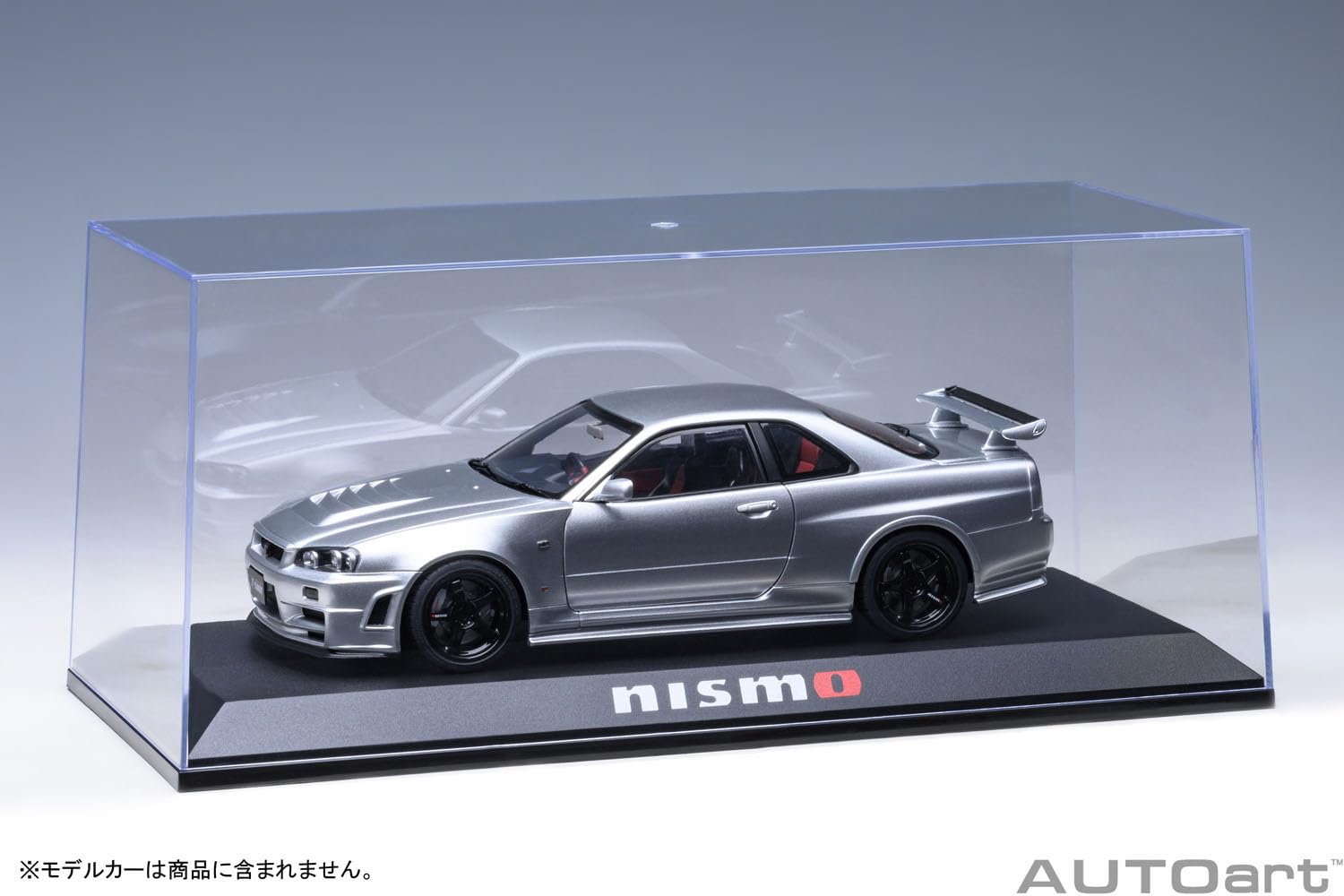 The Nismo R34 GT-R Z-tune is a special complete car that is the envy of car enthusiasts. To coincide with the release of the 1/18 scale model made with a new mold from Auto Art, a display case bearing the Nismo logo will be available, delighting fans.