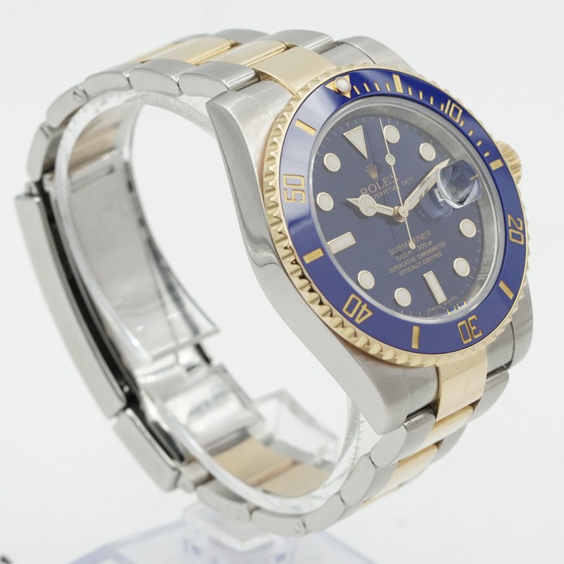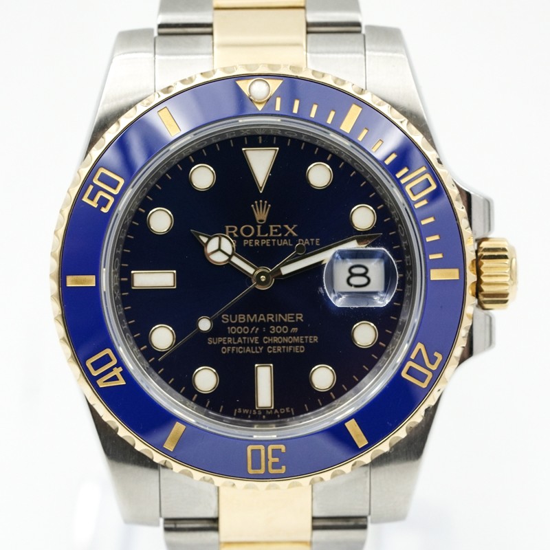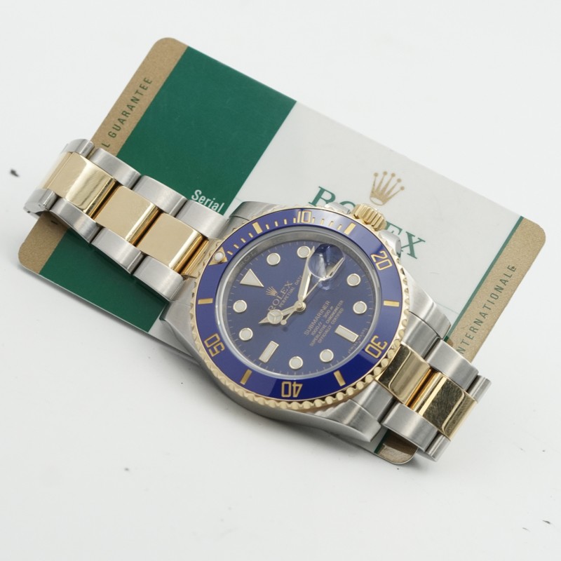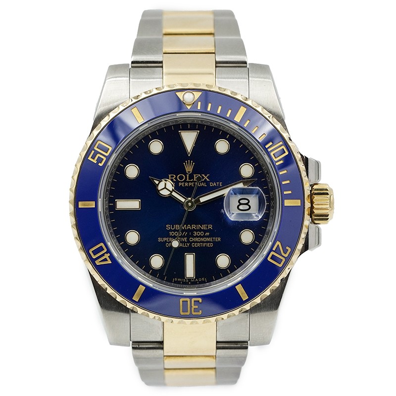 This Rolex Submariner Date 116613LB, affectionately known as the ?Bluesy? was recently added to our pre-owned collection. This iconic diver's watch combines stainless steel and 18K yellow gold for a striking two-tone finish, paired with Rolex's signature sunburst blue dial and matching blue Cerachrome ceramic bezel insert.