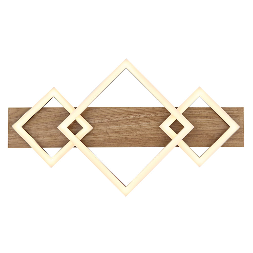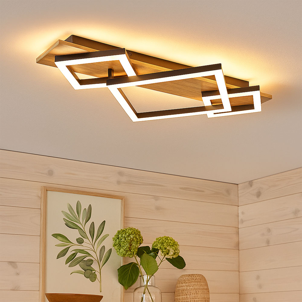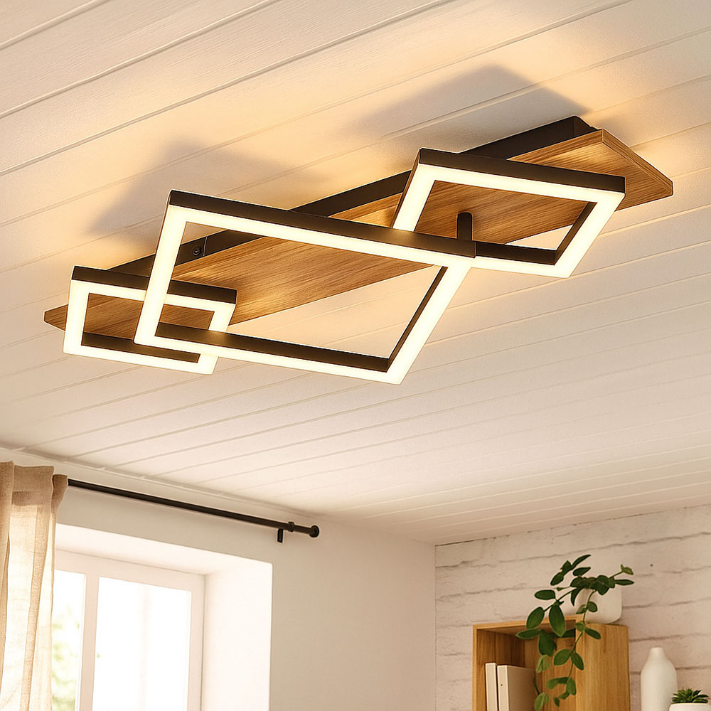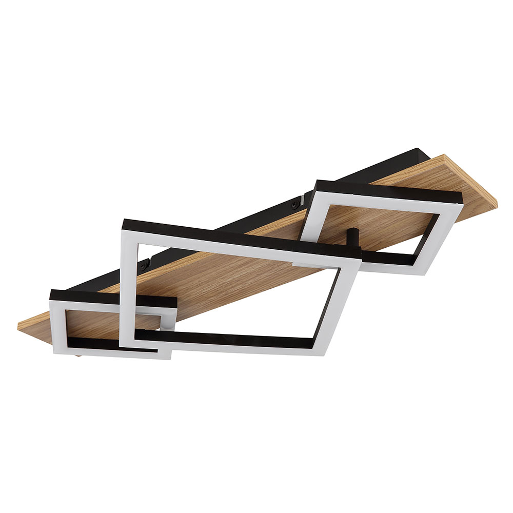 Die Materialmischung aus MDF in Holzoptik, opalem Kunststoff und schwarzen Metallelementen macht die Lampe zu einem stilvollen Blickfang, der sich sowohl in klassische als auch in moderne Einrichtungen harmonisch einfügt. Mit einer Länge von 54 cm, einer Breite von 31,2 cm und einer Höhe von 7,5 cm eignet sie sich hervorragend für mittlere bis größere Räume. Die fest verbaute LED mit 24 Watt sorgt für eine Lichtleistung von 2900 Lumen. Mit einer Farbtemperatur von 3000 Kelvin erzeugt sie warmweißes Licht, das eine behagliche und freundliche Atmosphäre schafft. Die Lampe erreicht sofort beim Einschalten ihre volle Helligkeit und ist mit einer Lebensdauer von bis zu 20.000 Stunden sowie 10.000 Schaltzyklen besonders langlebig.