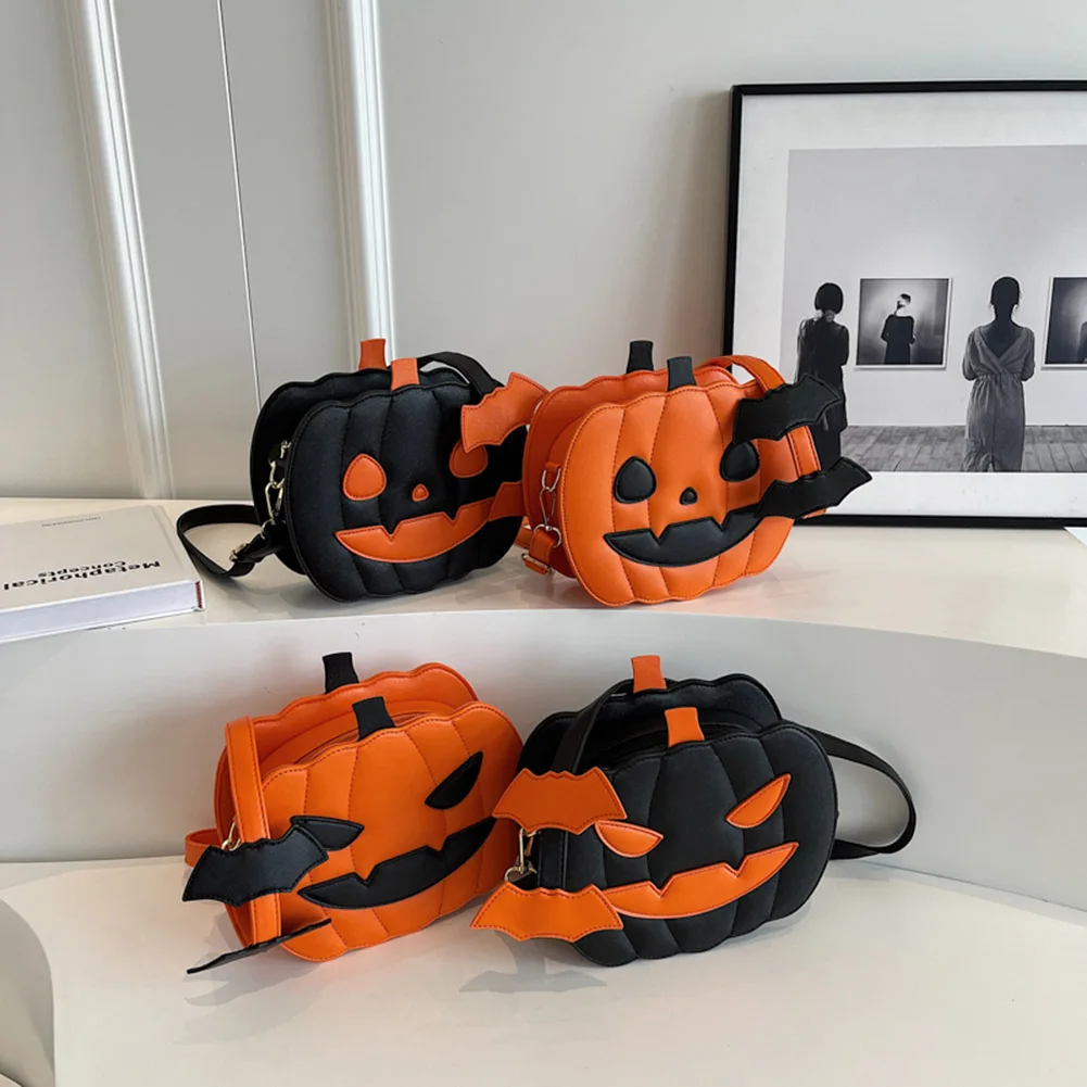 Women Pumpkin Crossbody Bag PU Leather Shoulder Purse w/ Zipper Halloween Funny