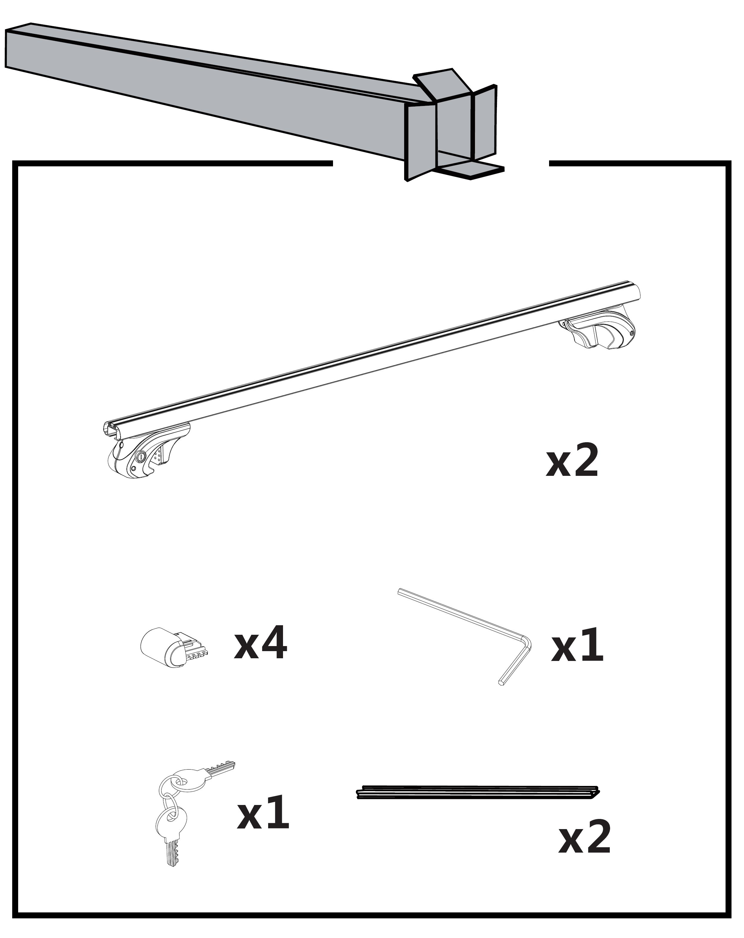 Das Set enthält keine Schienen. In der Regel werden sie zusammen mit dem Zubehör angeboten, das auf dem Dachträger montiert werden kann.