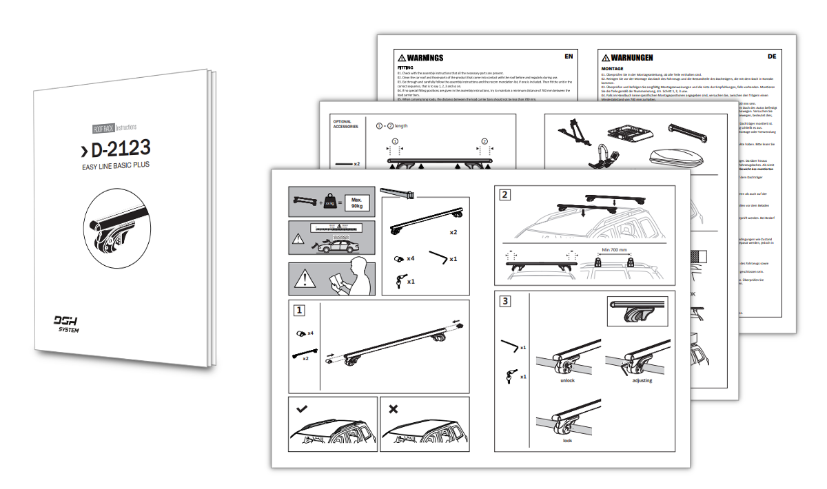 Dank dieser Lösung kann derselbe Satz in den meisten Autos mit Standard-Dachreling verwendet werden.