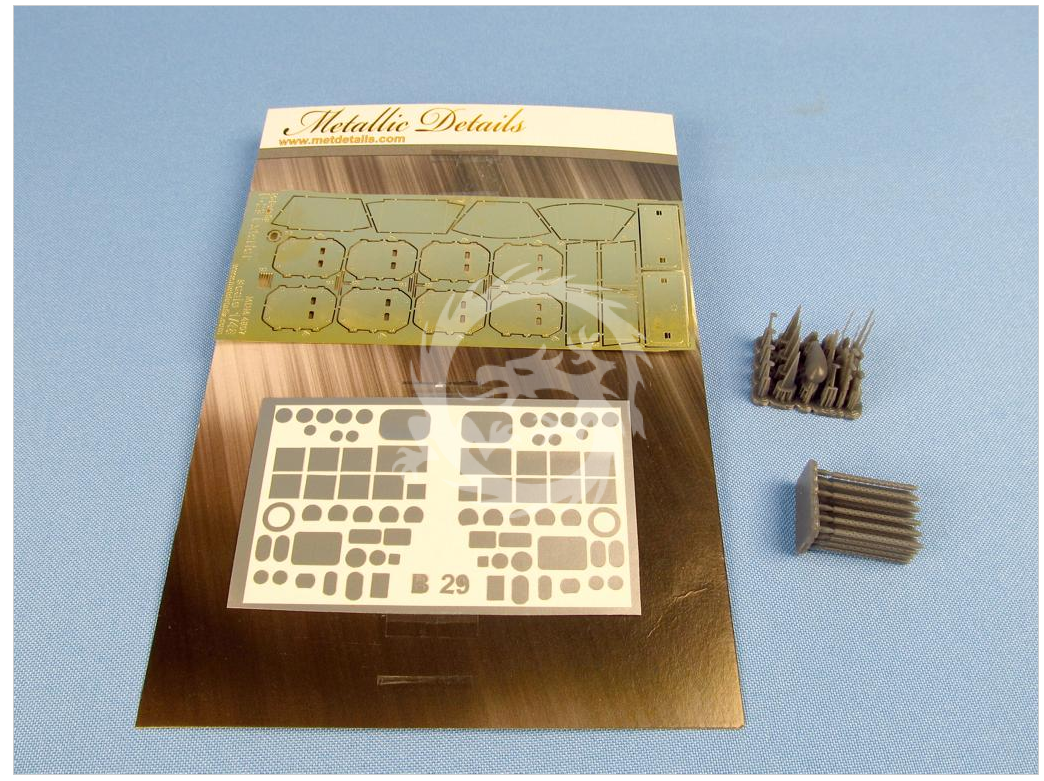 Zestaw zawiera elementy fototrawione, drukowane w 3D i samoprzylepne do detali zewnętrznych.