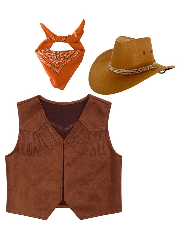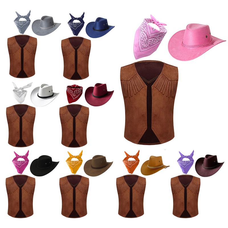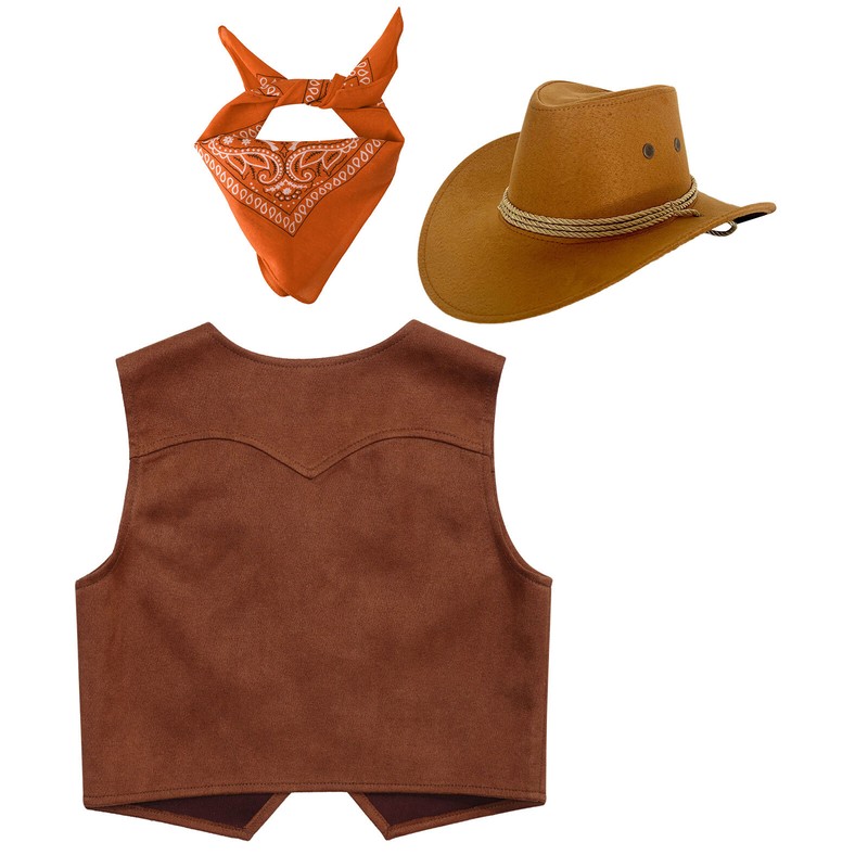 Set Include: 1Pc Cowboy Vest, 1Pc Cowboy Bandanna, 1Pc Western Cowboy Hat