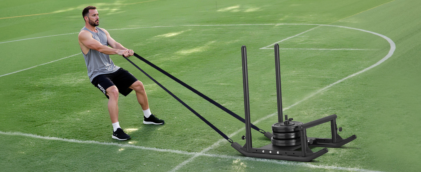R: Puedes realizar diversos ejercicios tanto en interiores como en exteriores, como arrastres de trineo, caminatas inversas, sprints de trineo, movimientos laterales, estocadas y más.