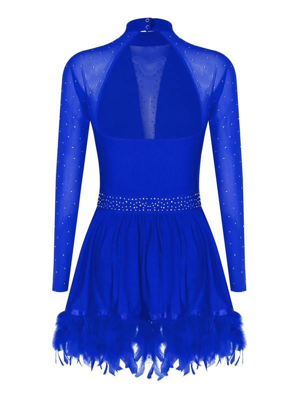 Crafted from polyester and spandex blend, this dress offers excellent stretch and comfort, allowing for free movement during dance.