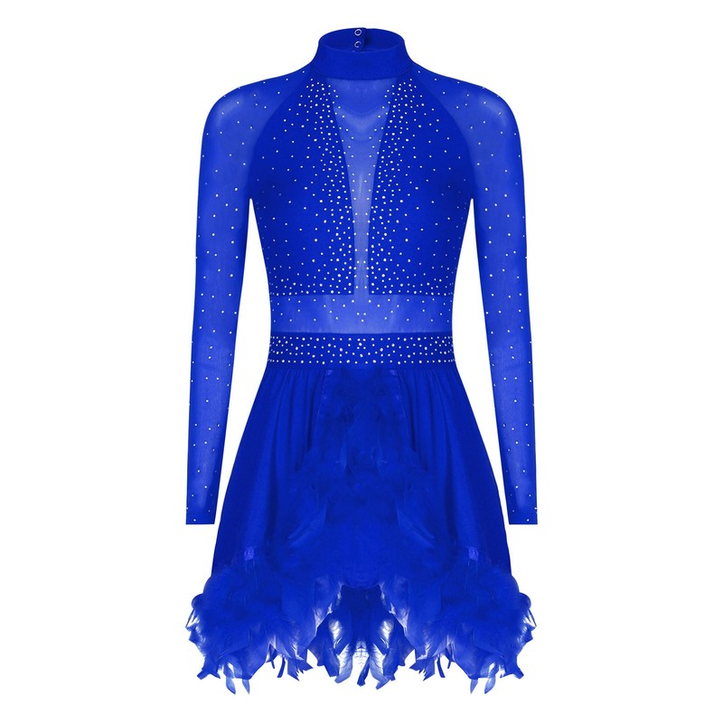 The feathered hem adds a playful and flirty element, making it suitable for various dance performances, parties, or any event where you want to stand out.