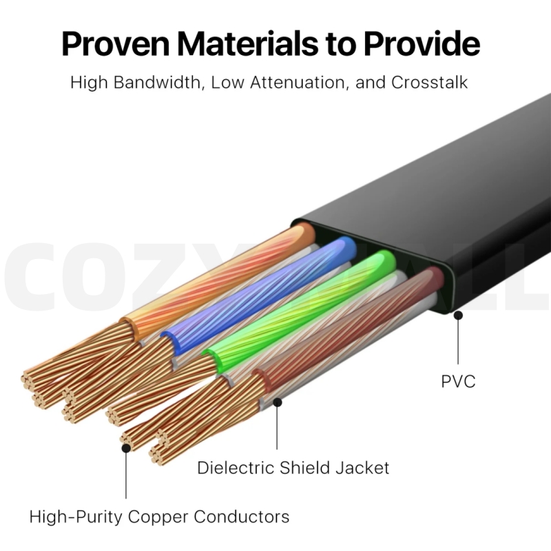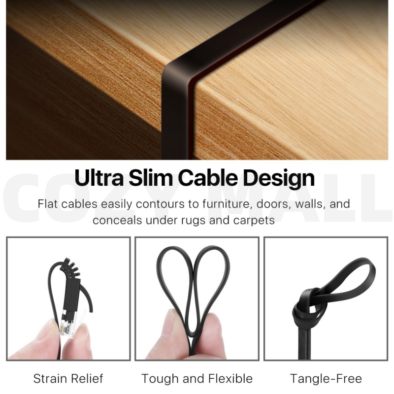 Flat Cable Design – Ultra-thin and flexible, easy to run under carpets, along walls, or behind furniture.