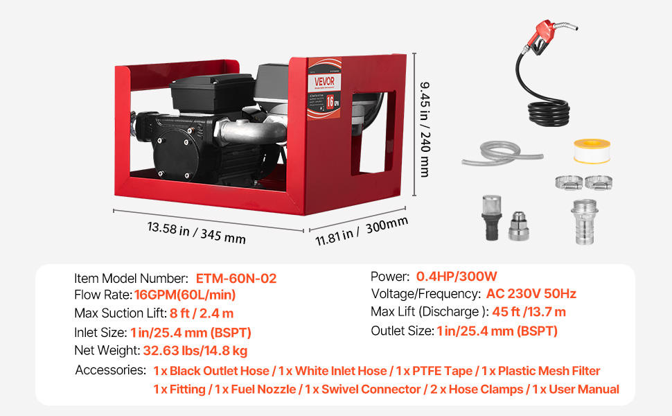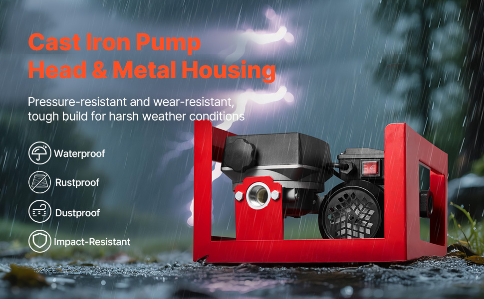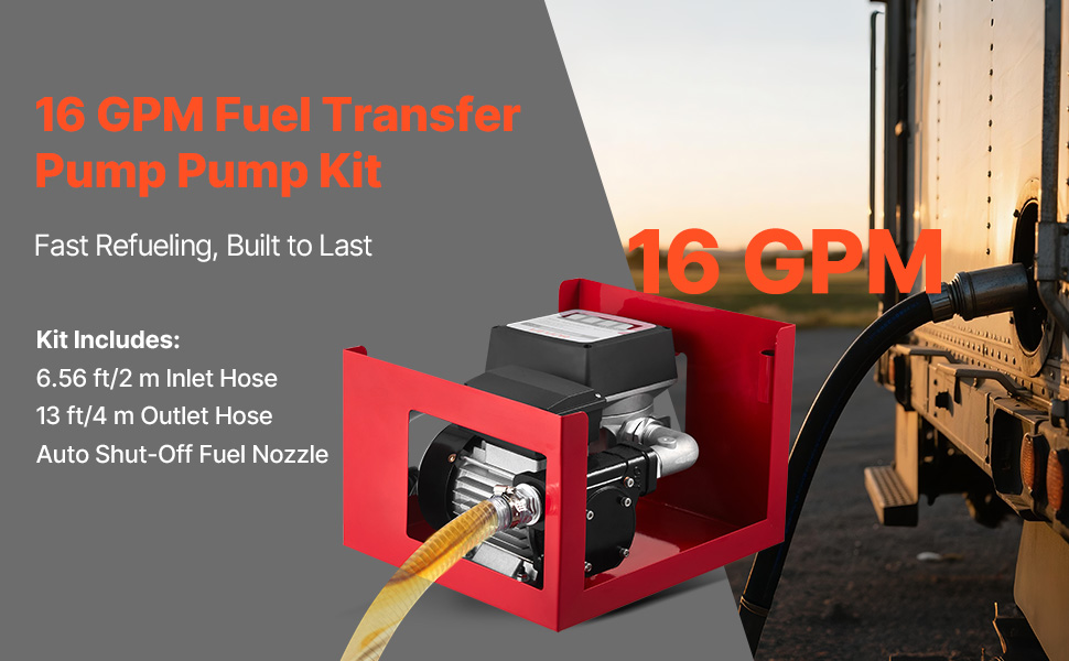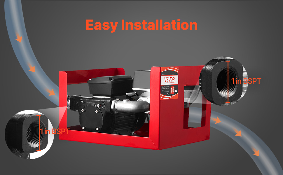 Transférez rapidement du carburant avec un débit maximal de 60 L/min (16 GPM), une aspiration maximale de 2,4 m (8 pi) et une hauteur de refoulement maximale de 13,7 m (45 pi). Dotée d'un moteur en cuivre pur, d'une tête de pompe en fonte et d'une protection contre la surchauffe intégrée, cette pompe offre des performances fiables et un fonctionnement sûr pour le diesel, le kérosène et le biodiesel.