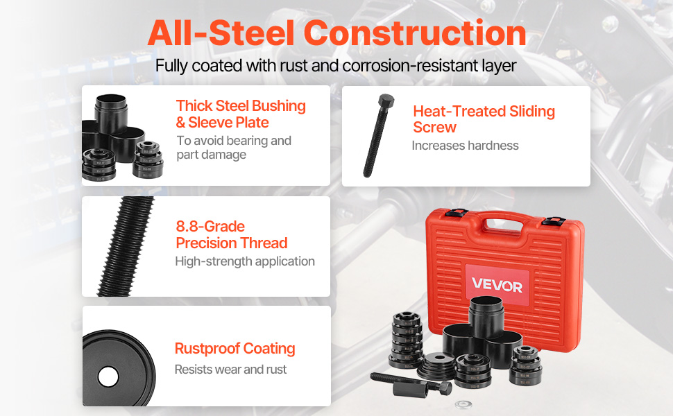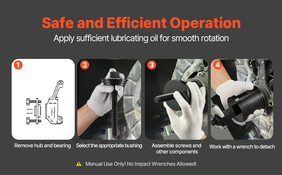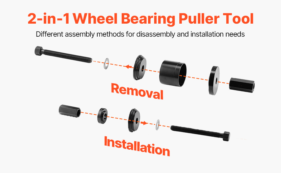 Cet outil de démontage de roulement de roue offre une flexibilité de démontage et d'installation, vous permettant d'assembler et de démonter des bagues, des manchons, des plaques de manchon, des vis et des écrous pour un outil de roulement FWD deux en un pratique.