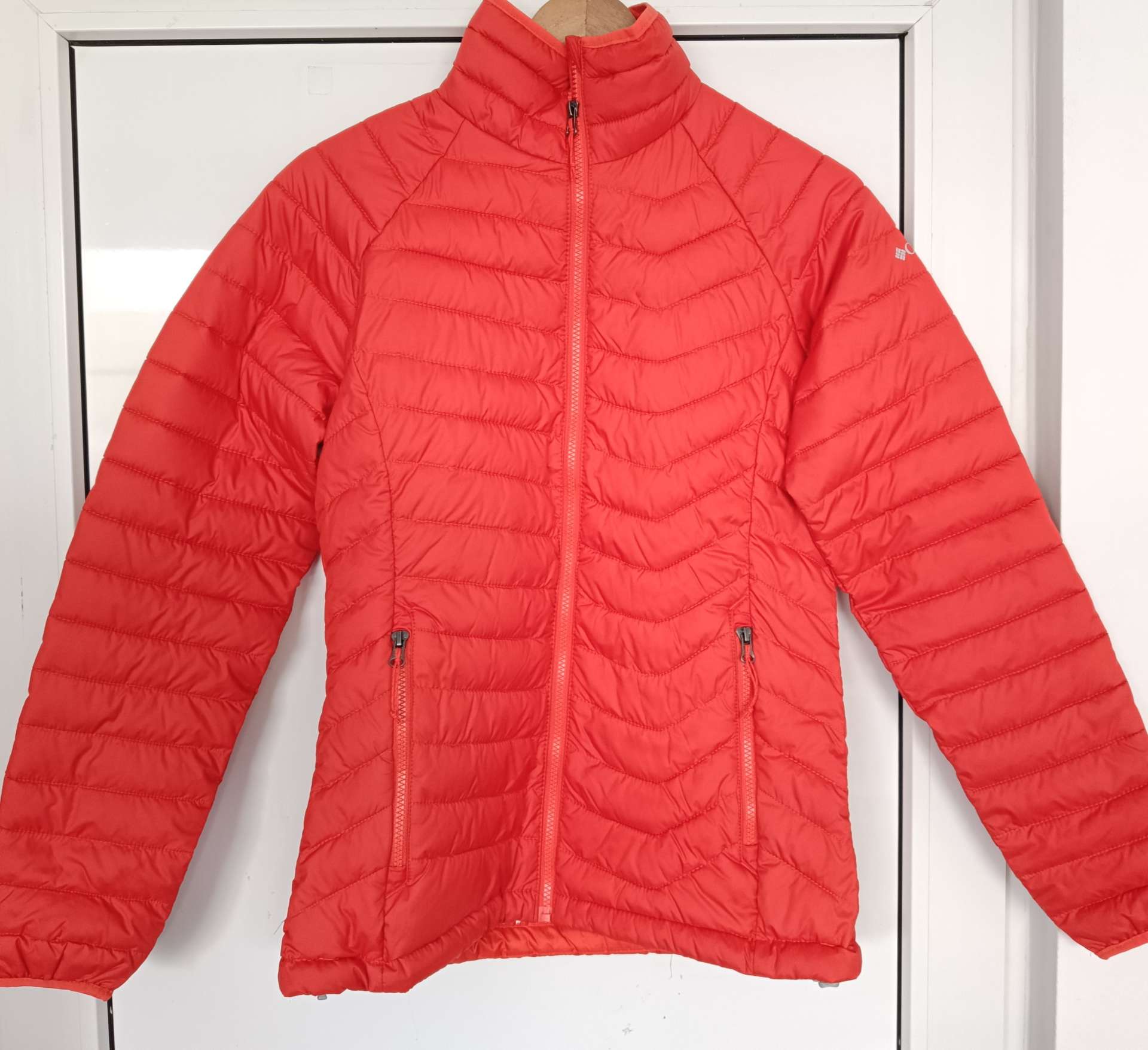 Chaqueta de invierno para mujer, aislante, impermeable y ligera, sin capucha, de la marca Columbia. Equipada con aislamiento sintético, cuenta con la tecnología Omni-Heat™ Reflective que te proporcionará comodidad térmica en condiciones de frío. La fina capa del forro garantiza que la energía generada por el cuerpo en movimiento no se desperdicie . Cuenta con dos bolsillos con cremallera para las manos y un bolsillo interior seguro. Los ribetes de los puños son elásticos. Es ideal para hacer senderismo y para el tiempo otoñal y invernal. Chaqueta de color rojo.