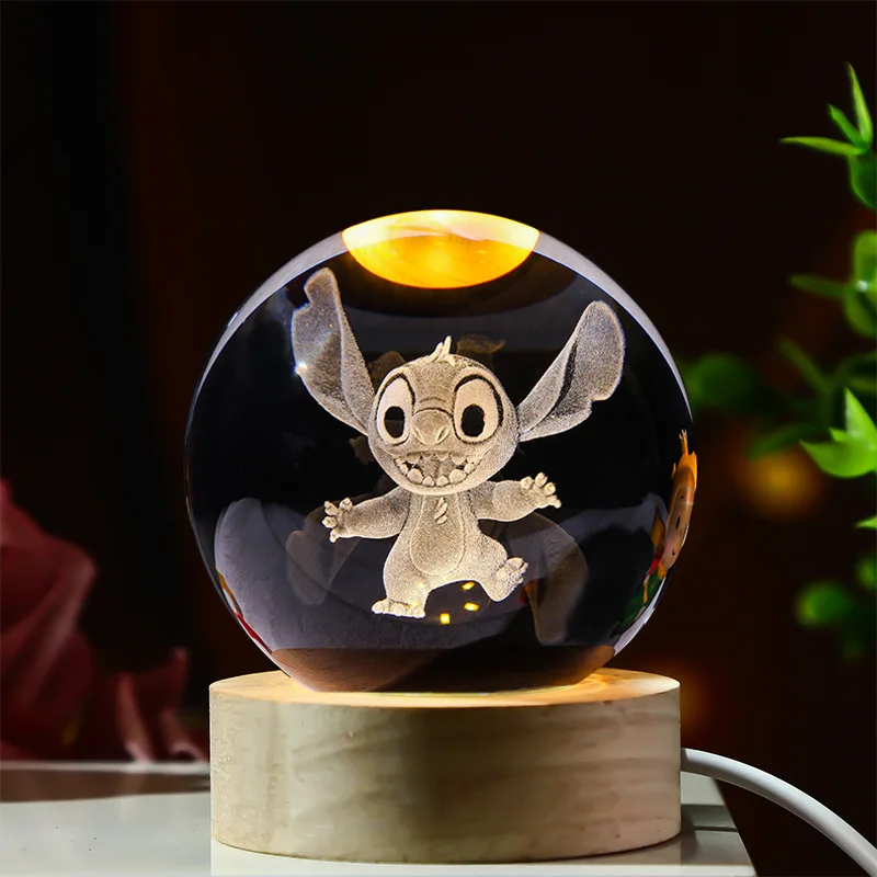 Miniso 6cm Cartoon Lilo & Stitch Crystal Ball Luminous 3D Carved Night Light Desktop Ornament Creative Gift Birthday Gift