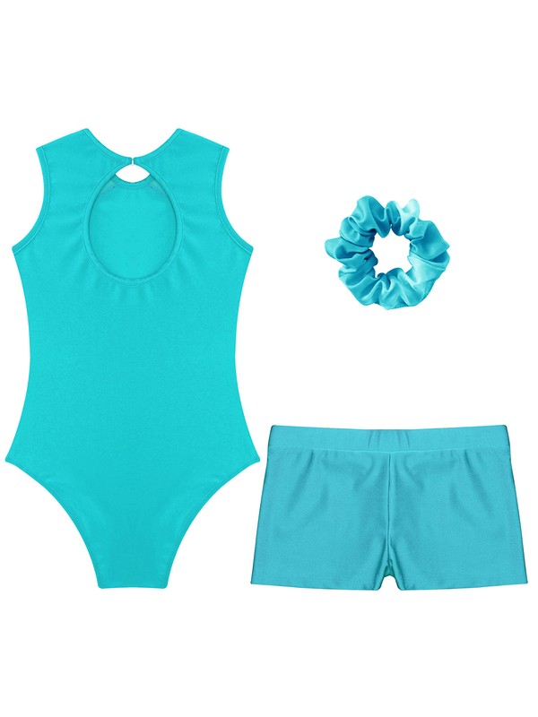 Sleeveless leotard for girls, keyhole back and round neck with a clasp for easy wearing and taking off.