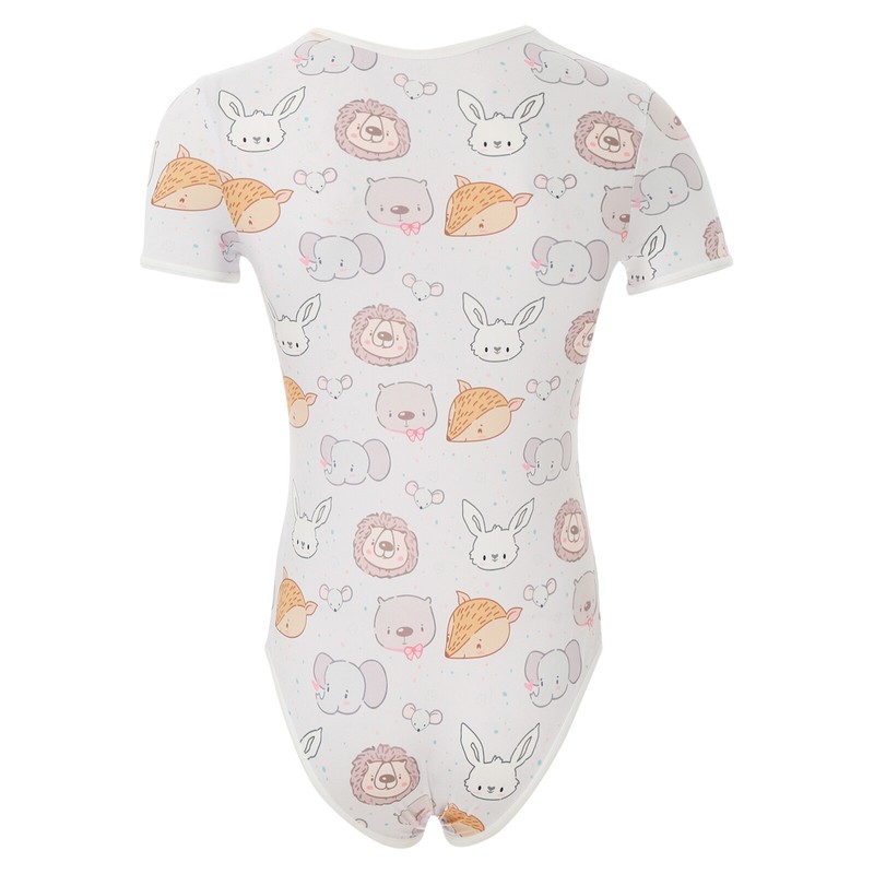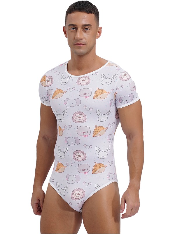 Bodysuit for men designs with round neck, short sleeves, cute print, buttoned crotch and slim fit, one-piece romper is stylish and different.