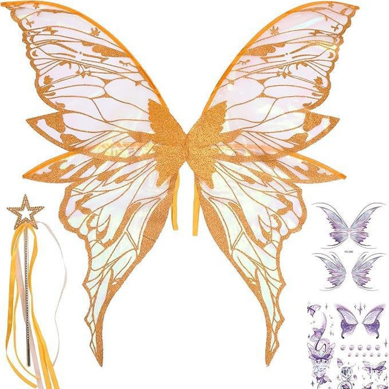The glittery design of the butterfly wings and star-shaped fairy stick adds a touch of sparkle and glamour, keeping up with the trendy and eye-catching aesthetic.