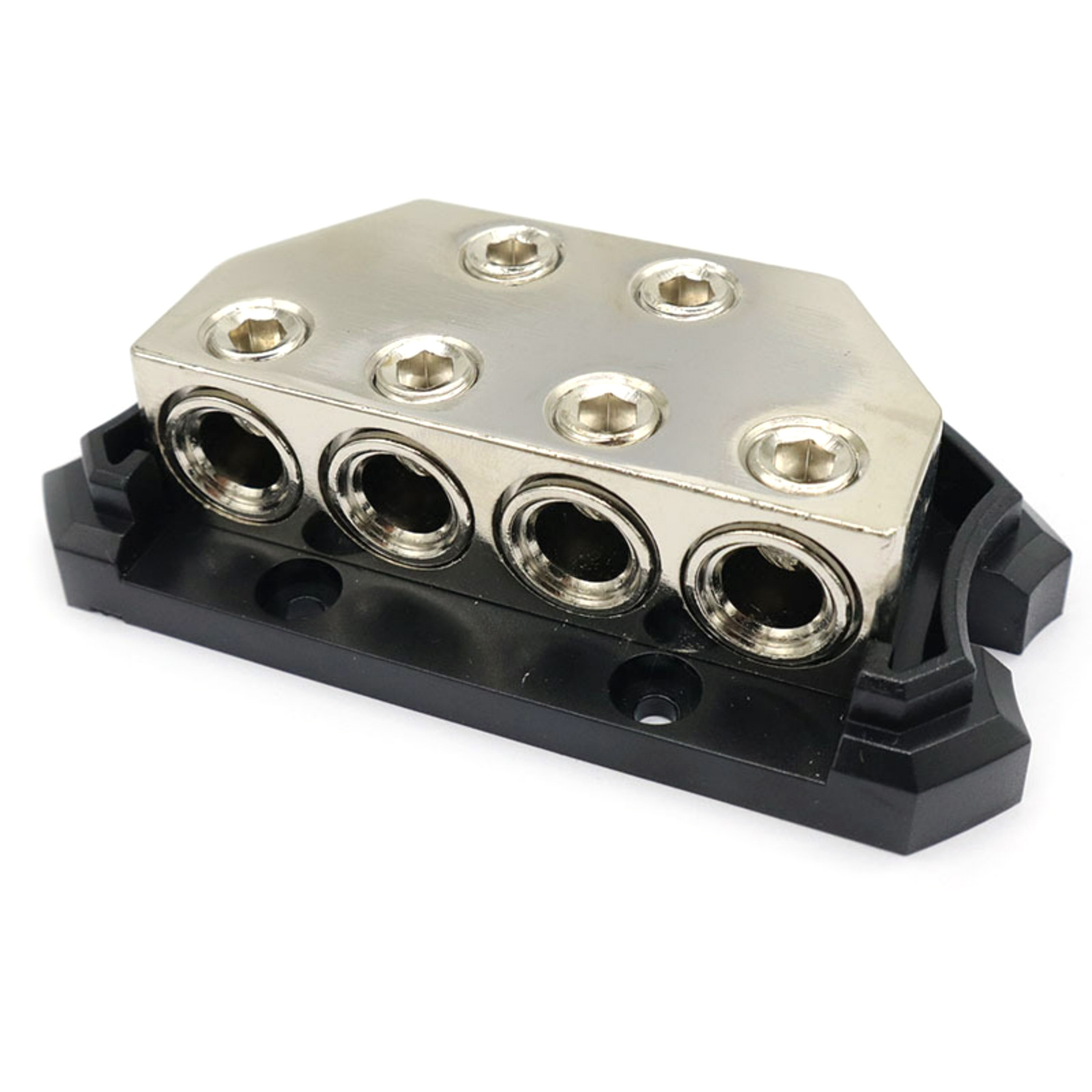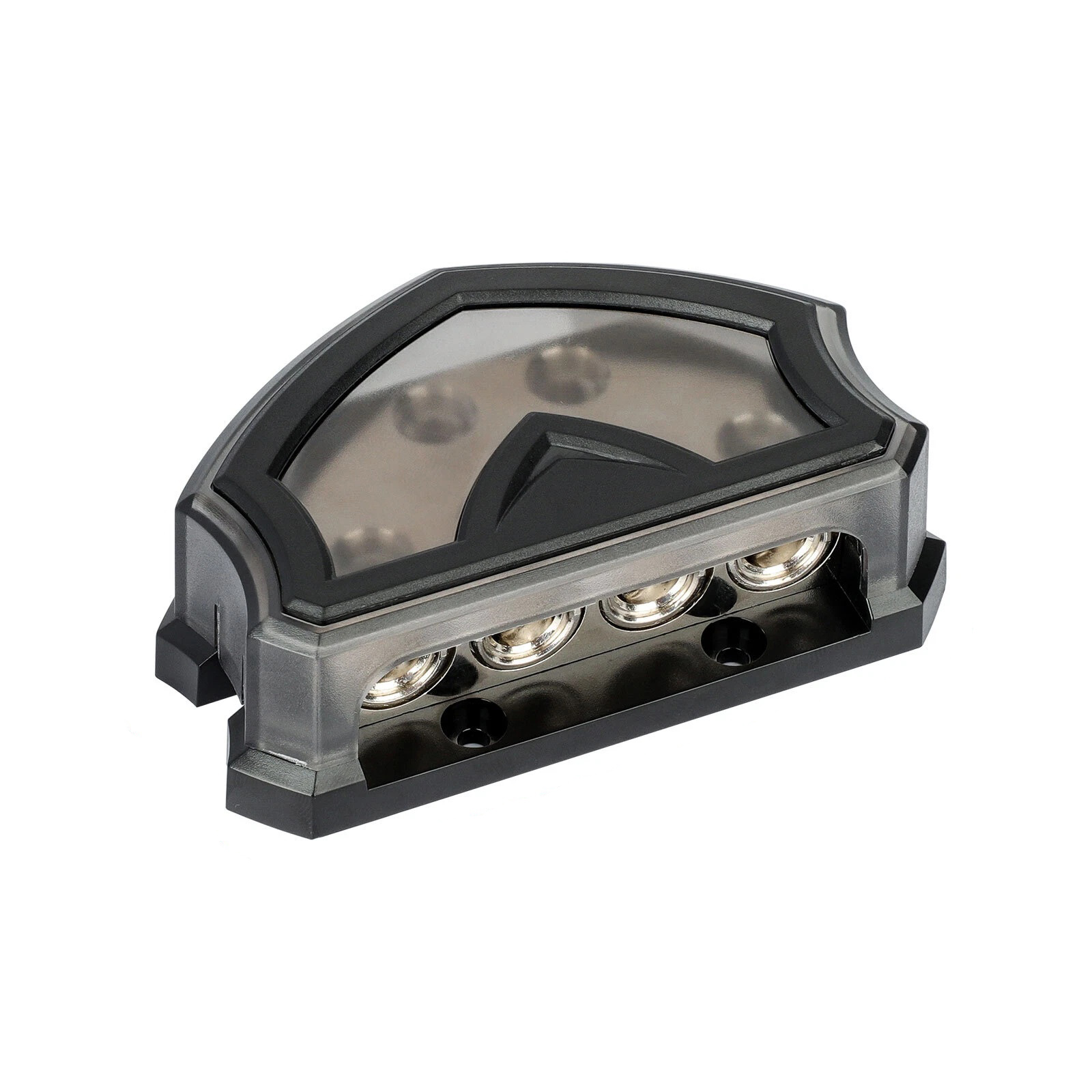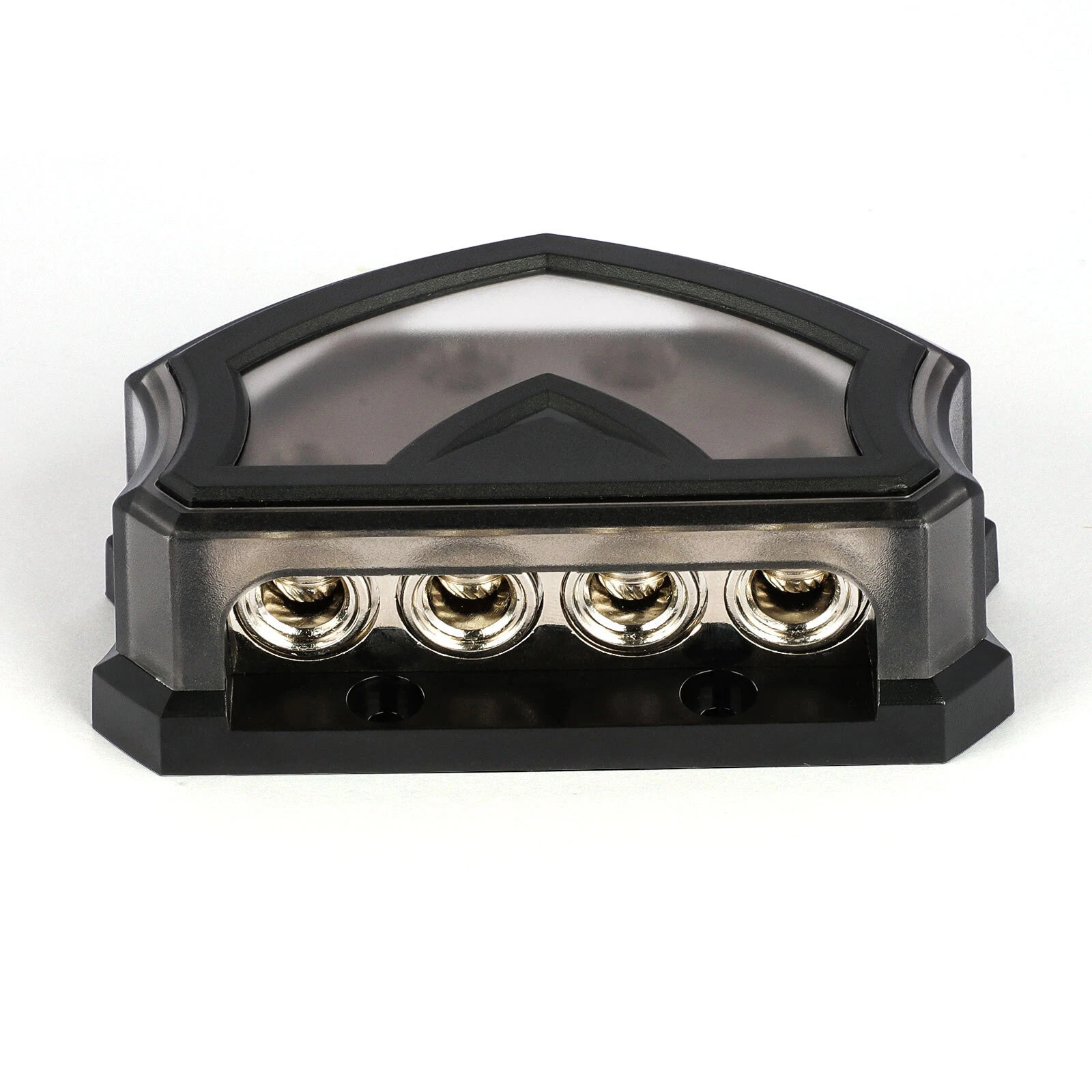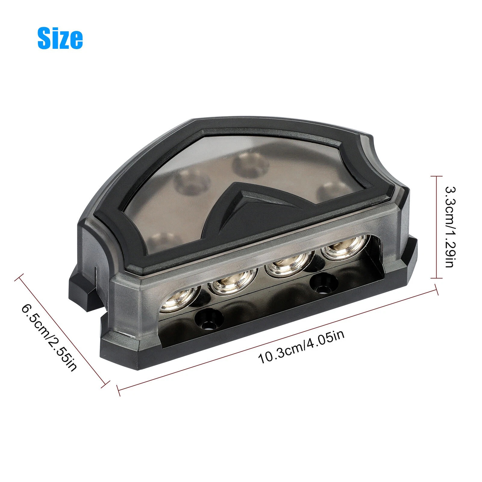 Product Style: Featuring screw-down wire clamps, an impact-resistant snap-on plastic cover, and solid corrosion-resistant construction, this distribution block ensures your system performs flawlessly. Its 2 input holes (allowing 0/2/4 Gauge In) and 4 output holes (allowing 0/2/4 Gauge Out) make it adaptable for various audio systems.