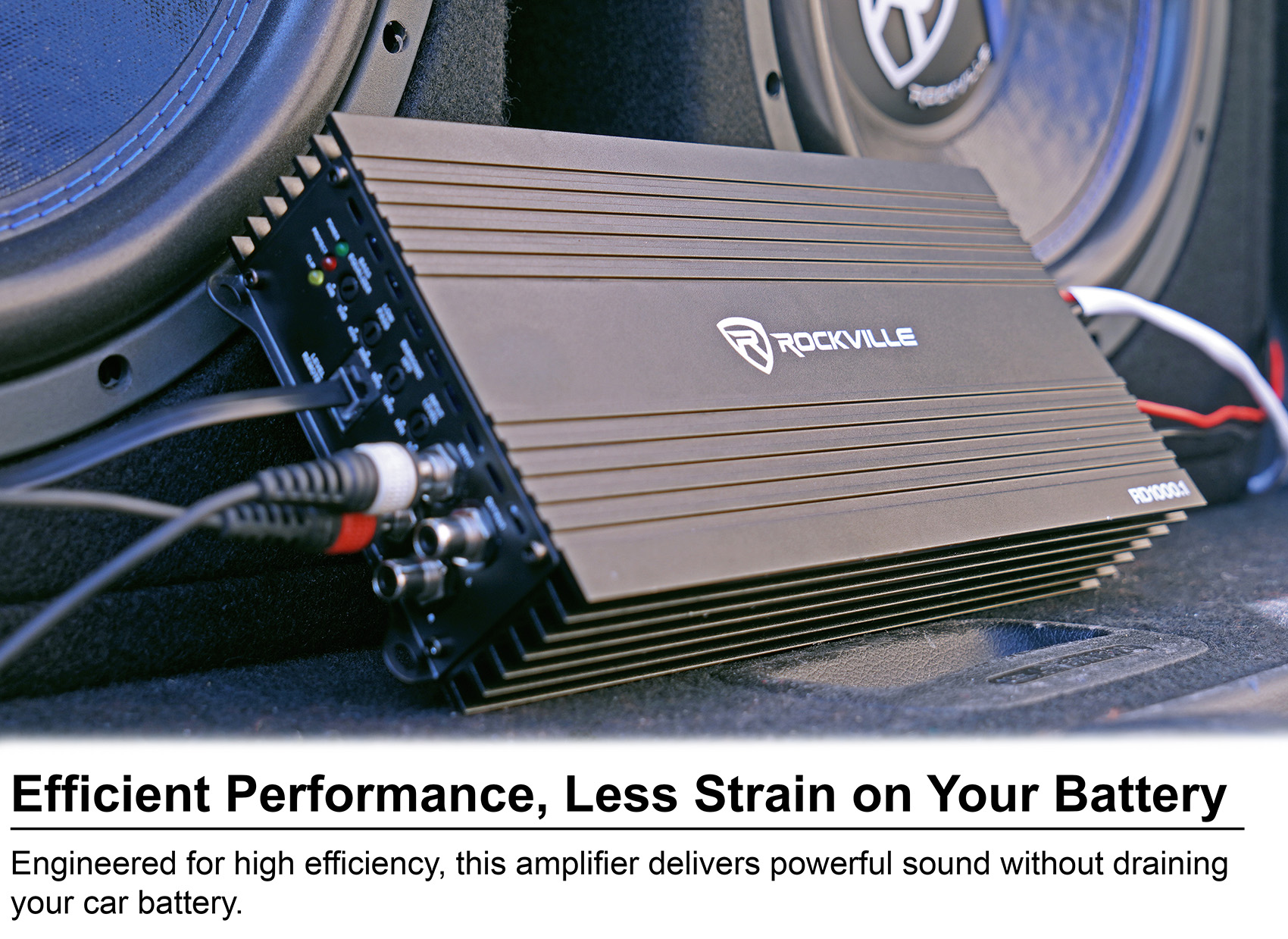 The RD series by Rockville is a compact class “D” amp that will not take up a lot of your valuable trunk space.