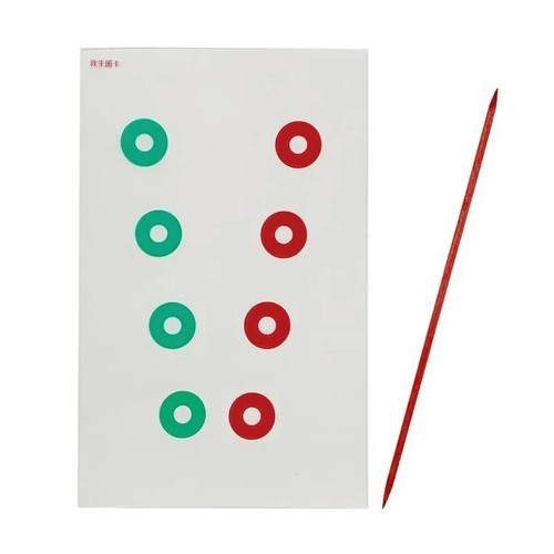 TRAINING METHOD: Hold a lifebuoy card and place it 40 cm away from your eyes. Start training from the 2 closest circles at the bottom 1. Set training: Use the "eye-to-eye" feeling to focus your gaze on the area between the eye and the card. After fusion, you will feel a merged circle appearing in the middle. Maintain the fusion state for 10 seconds, and look upwards at the circles with larger distances in order to increase the difficulty. , if it is too large to be fused, the training will be repeated until each row of optotypes can be fused. If you feel it is difficult, you can use the guide rod. Place the guide rod between the trainer and the lifebuoy card. Watch the guide rod and gradually move it closer to your eyes. 2. Dispersion training: Relax your eyes, look through the card and look at the distance behind the card. After fusion, you will feel a merged circle appear in the middle. Maintain the fusion state for 10 seconds, and then increase the difficulty training upwards. The training method is the same as above. If you feel it is difficult, you can use the guide rod. Place the guide rod behind the lifebuoy card and watch the guide rod.