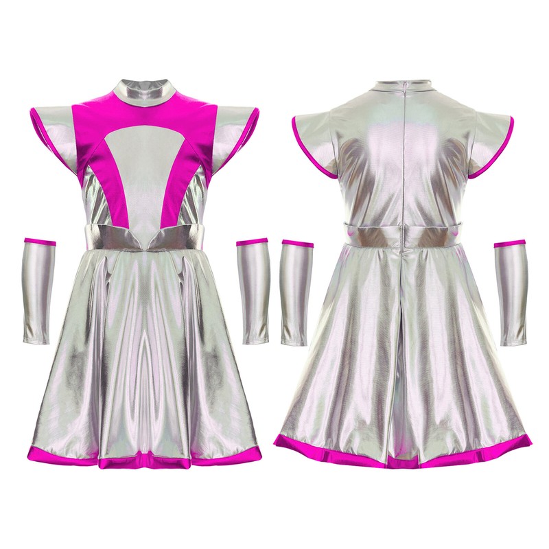 Alien cosplay costume for child size, includes an fantastic alien dress and a pair arm sleeve.