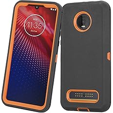 for Moto Z3 Case, Moto Z3 Play Case, Heavy Duty with [Built-in Screen Protector] Tough 3 in1 Rugged Shockproof Armor Cover for Motorola Moto Z3/ Z3 Play (Black/Orange)