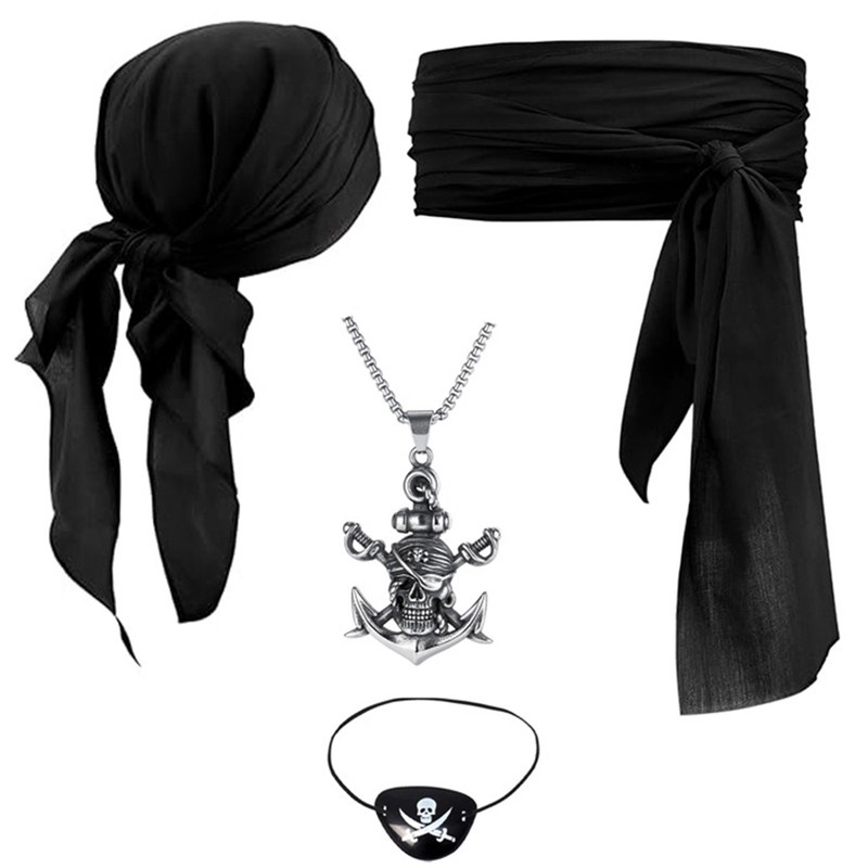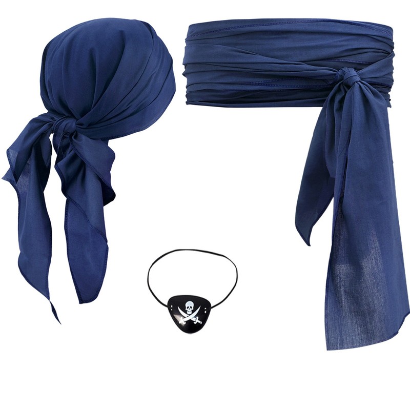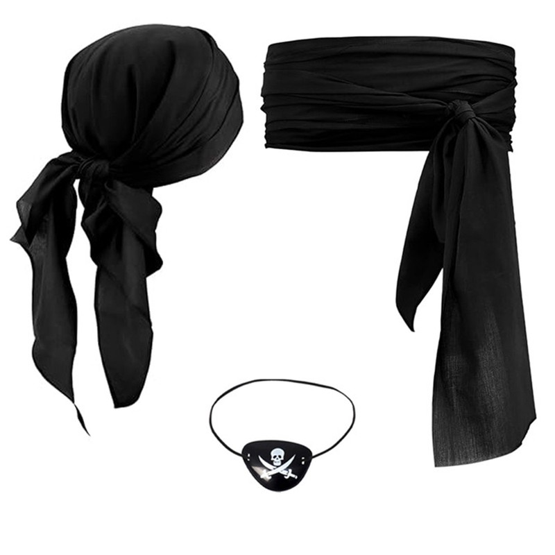 Set Include: 1 Set of Pirate Cosplay Costume AccessoriesCondition: New with tagsMaterial: 100% PolyesterFeatures:Made from 100% polyester, the accessories are lightweight and durable, ensuring long-term use during cosplay events.Available in a variety of color sets including vibrant reds, classic black, and blues, allowing you to choose the one that best matches your pirate-themed look.The set comes with a headscarf, wrap, hat, and eye mask, and some sets even include a sash, belt, and necklace, offering a comprehensive and trendy pirate cosplay ensemble.The one-size-fits-all design makes it convenient for women of different body types to wear, eliminating the hassle of size selection.Perfect for Halloween parties, cosplay conventions, or any pirate-themed events, this accessory set will help you stand out and create an eye-catching pirate look.Size:Square Headscarf:Length*Width*Height: approx. 90*90cm/ 35.4*35.4inchTrangle Headscarf:Length*Width: approx. 116*76.5cm/ 45.67*30.12inch Friendly Tips: The size is measured by hands, please allow 1-3cm errors of measurement. Photo color might be a little different from the actual product due to color display of different monitors.