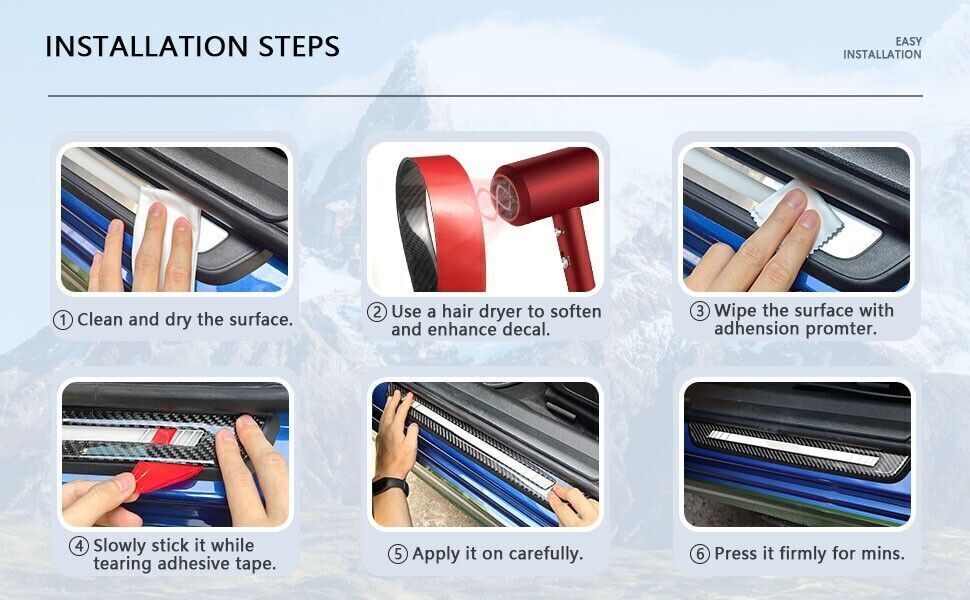 4.It's not just a carbon fiber trim, it fits perfectly on your car, ensuring that your car is not scratched, does not wear out, and makes your car look brand new.