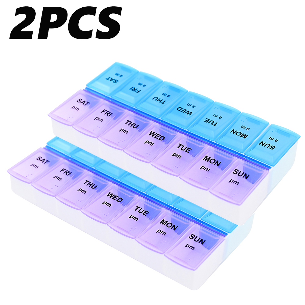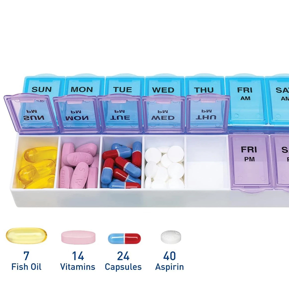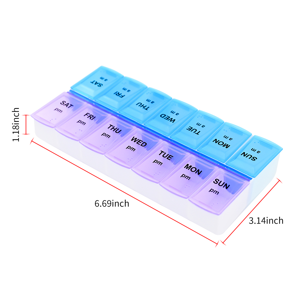 Large Capacity: 14 compartments for 7 day and 2 times a day,each compartment able to contain up to 10 capsules. (Vary by the sizes of capsules)