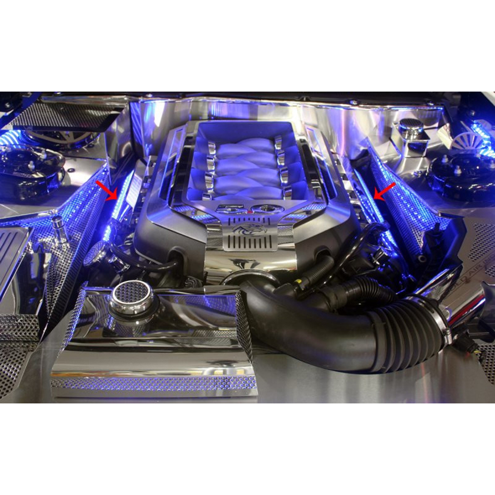 Designed to fit your Mustang GT perfectly, these Fuel Rail Covers are constructed from high-quality 304 stainless steel and perforated for a custom look and include a yellow LED kit