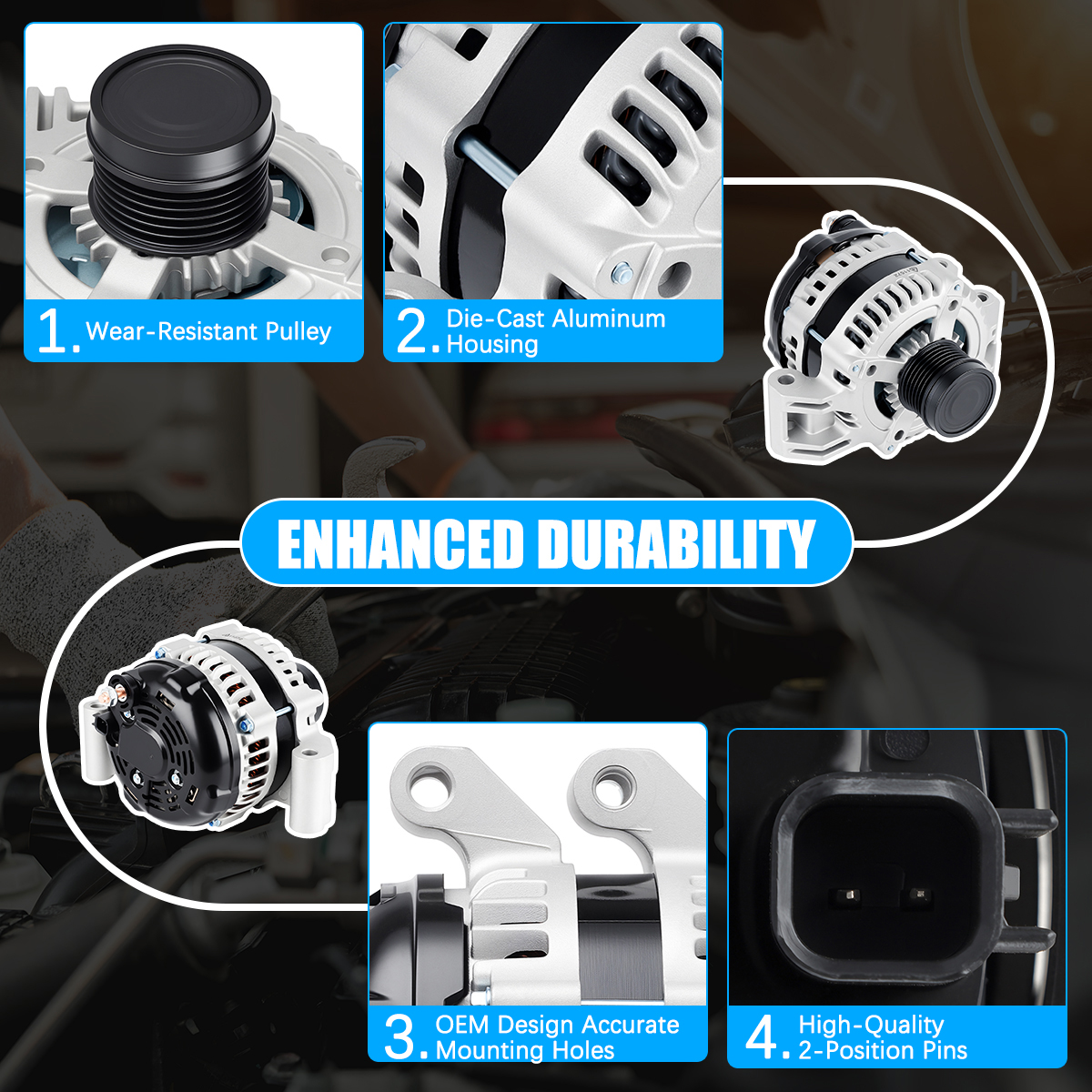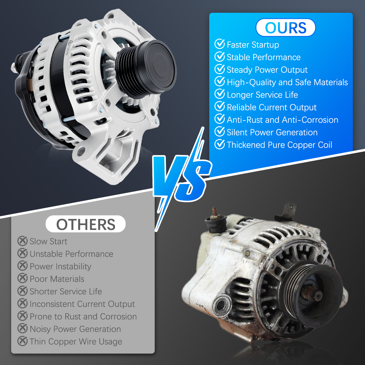 Rugged and stable car alternator, matched against OE originals for performance.