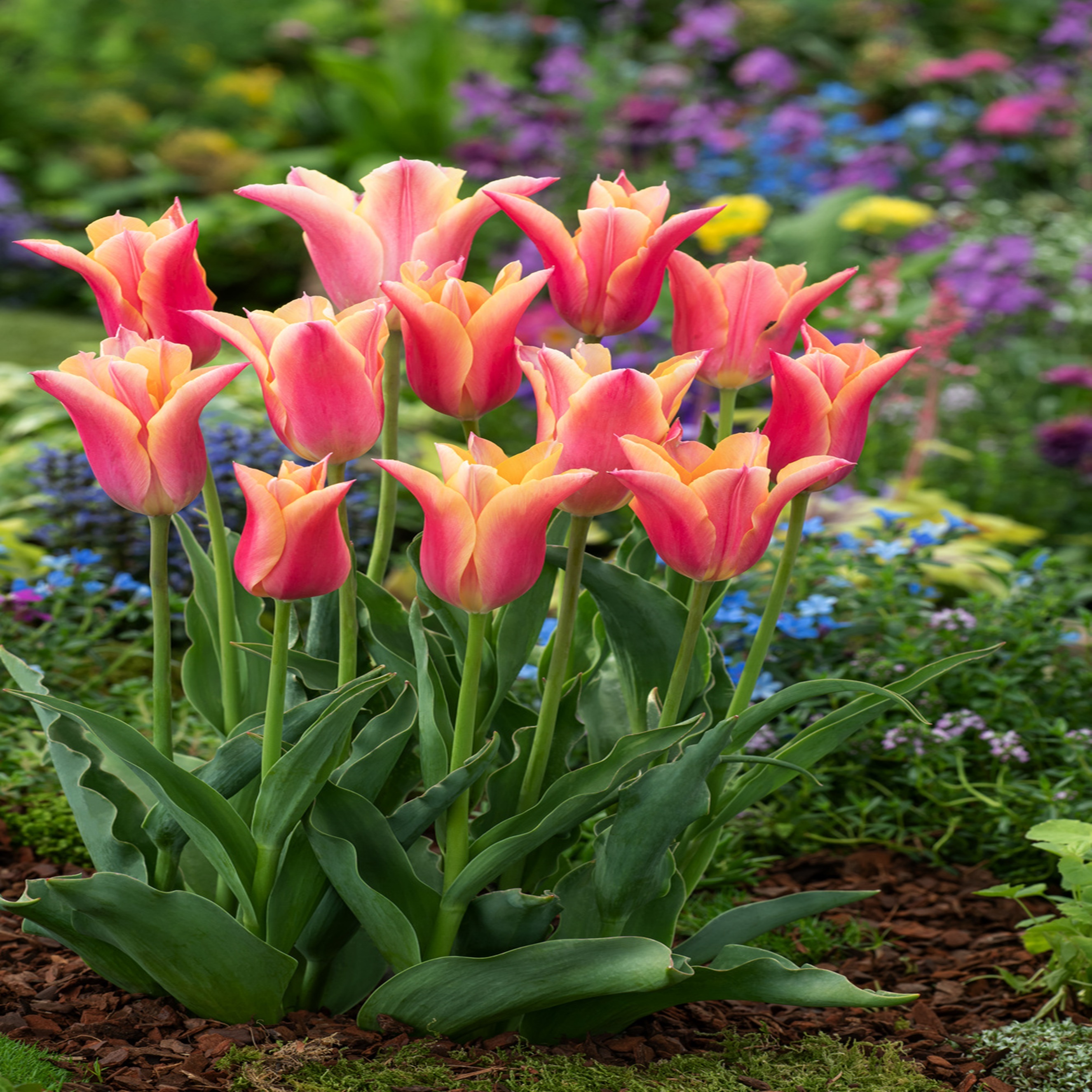 La cura dei tulipani comprende la fertilizzazione con prodotti multi-nutrienti fino alla fioritura. Assicuratevi che il terreno non si secchi eccessivamente, irrigando regolarmente fino all'inizio dell'essiccazione delle foglie. Dopo questo periodo, i bulbi possono essere raccolti e conservati in un luogo asciutto e ben ventilato, oppure possono essere lasciati nel giardino per alcuni anni senza dover essere dissotterrati. Questa varietà di tulipani è resistente al gelo, garantendo splendide fioriture anno dopo anno.