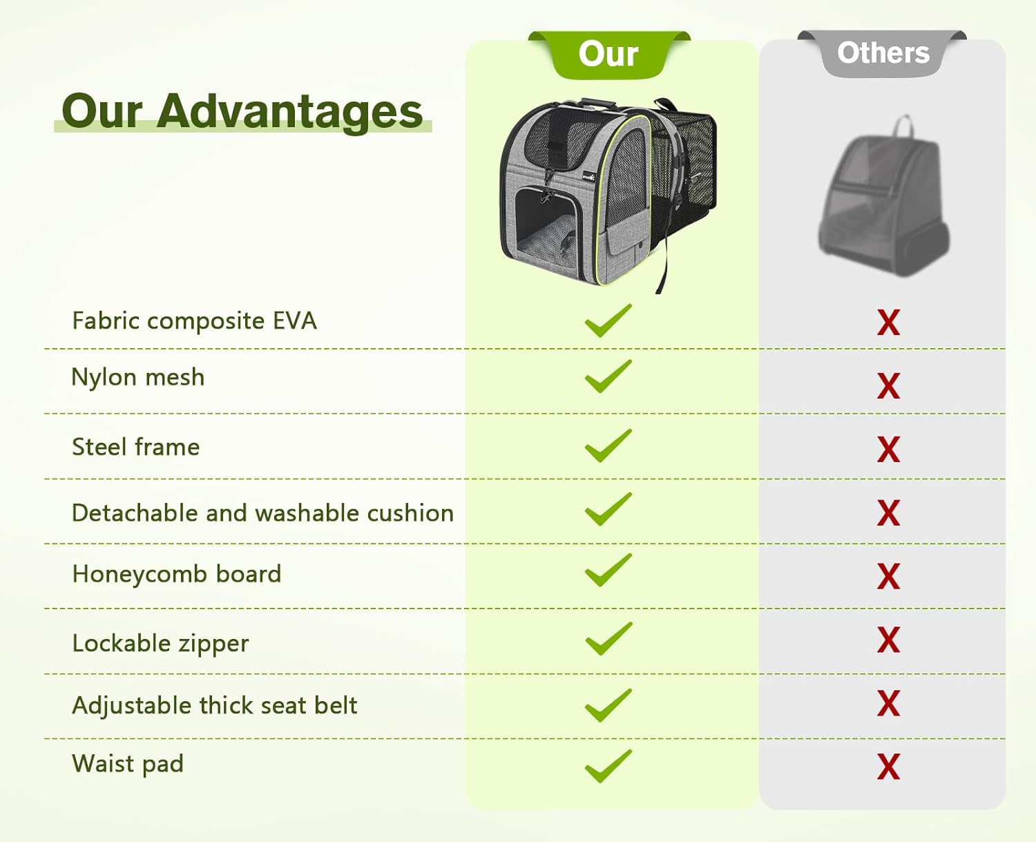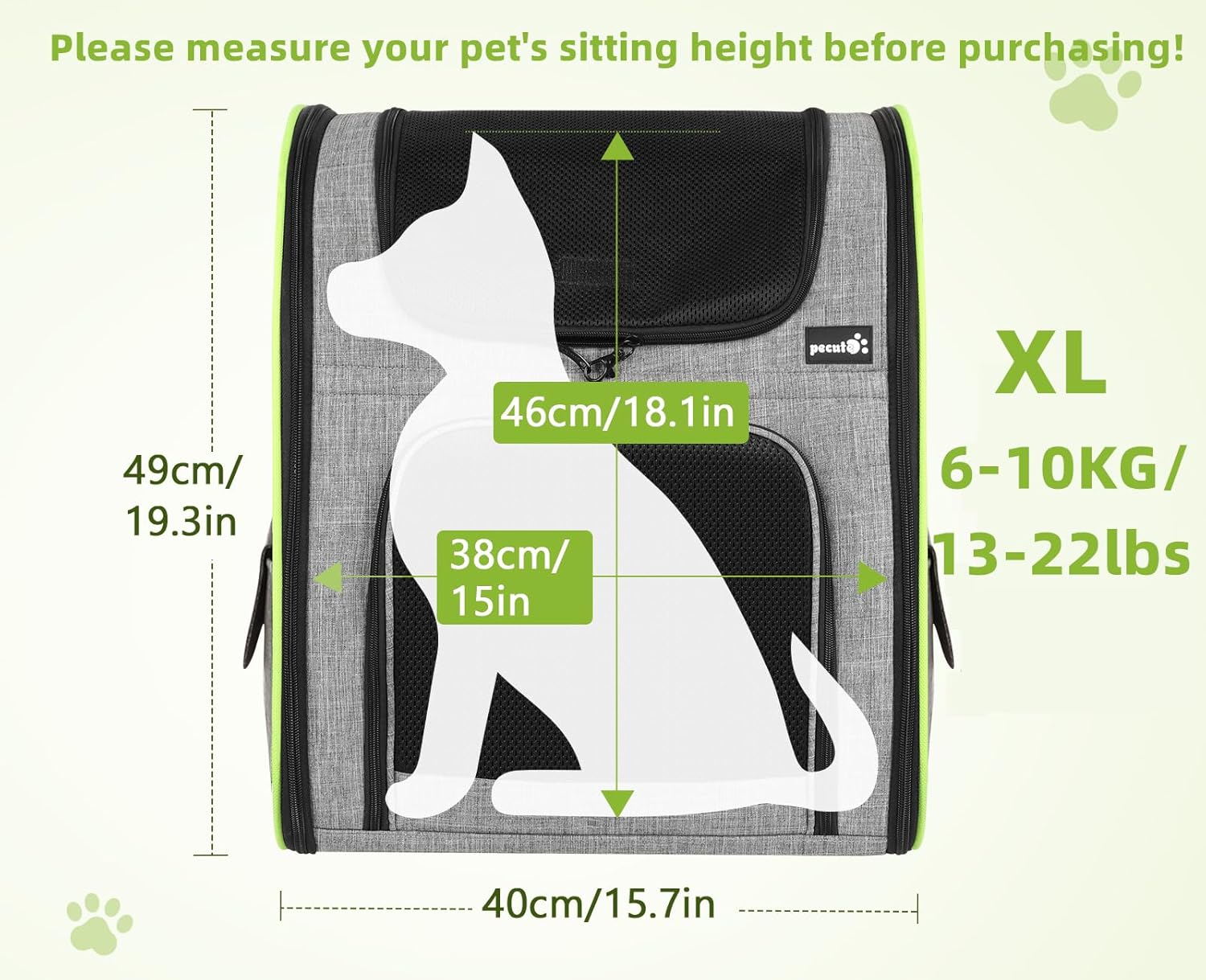 Pourquoi choisir le sac à dos Pecute pour animaux de compagnie ? - Conception confortable et stable : les bretelles réglables et les boucles avec coussin élargi réglable aident à réduire la charge et à augmenter le confort. Les deux boucles sur la poitrine et le ventre du sac à dos pour animaux de compagnie aident à réduire les secousses et à maintenir le porte-bébé stable pendant le voyage. - Rangement pratique : les sacs à dos pour transporter les chats sont équipés de poches pour ranger la nourriture, les sacs poubelles et autres accessoires indispensables tels que des bouteilles, des collations, des clés, des cartes ou des téléphones portables. - Caractéristiques de sécurité : le sac à dos pour chat est équipé d'une ceinture de sécurité intégrée qui peut être attachée au collier de l'animal pour éviter qu'il ne tombe ou ne s'échappe accidentellement. - Coussin solide et confortable : le sac à dos pour chien est doté d'un fond amovible et solide, avec un rembourrage moelleux qui permet à votre animal de s'asseoir ou de dormir confortablement. Dans l'ensemble, le sac à dos pour animaux de compagnie Pecute offre une conception confortable et stable avec des fonctions de rangement et de sécurité pratiques pour vous garantir, à vous et à votre compagnon à quatre pattes, un voyage sûr et agréable.