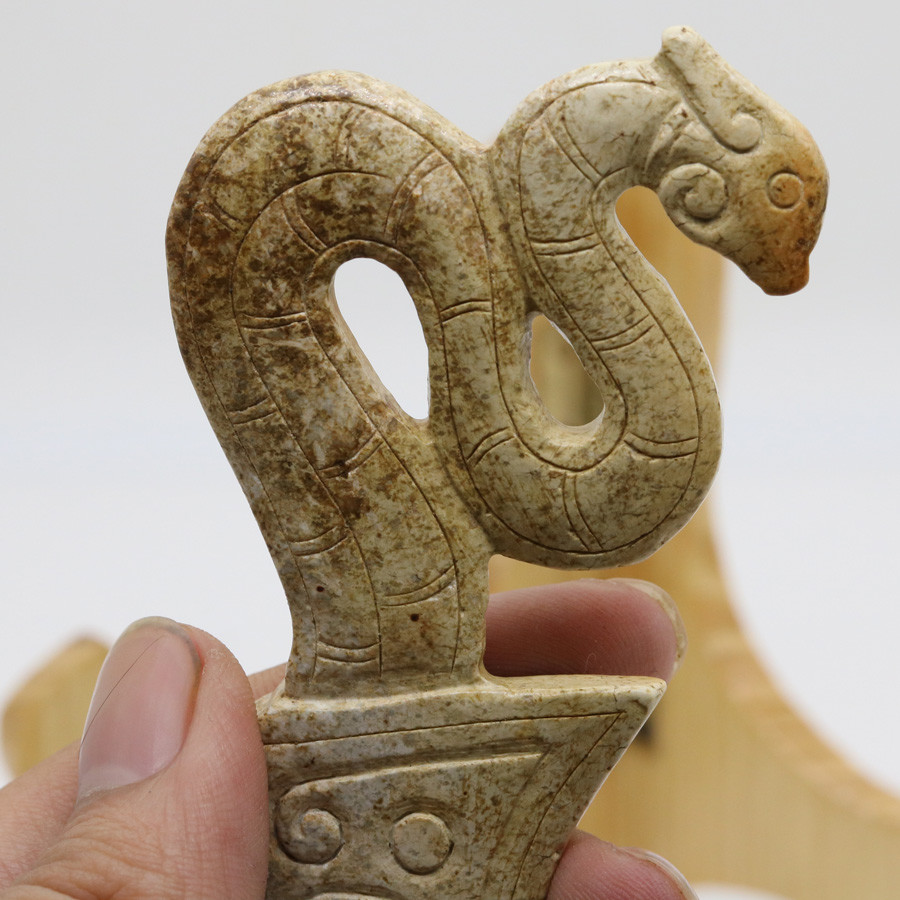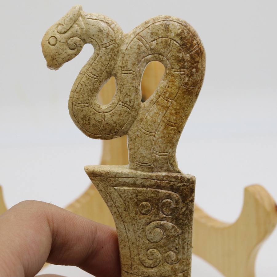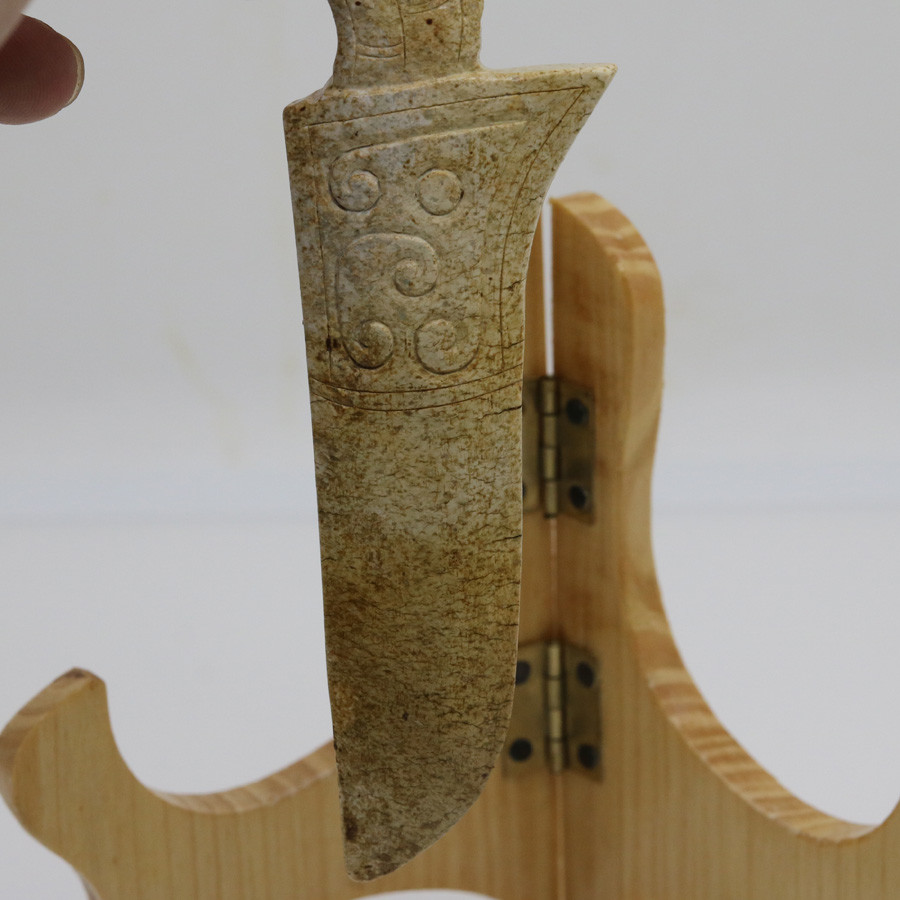 Chinese Oriental culture carved jade dagger-axe (ge)with a bird-shaped butt D308