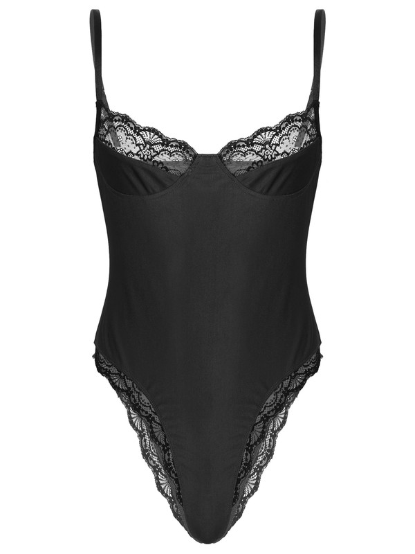 Men Lace Trimming Bodycon Bodysuit Sissy Unlined Wireless Bra Leotard.